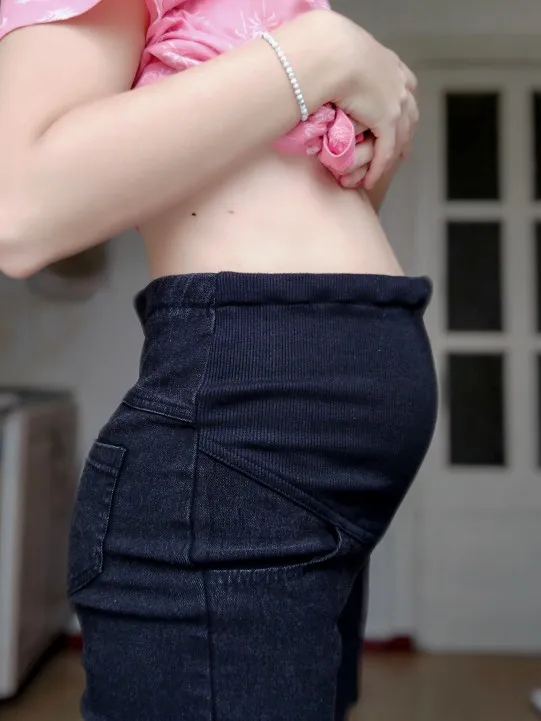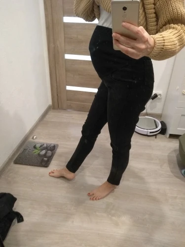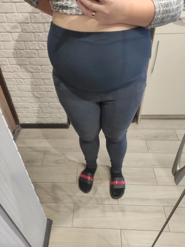 Джинсы хорошие, тонкие, хорошо тянутся, подошёл бы даже размер меньше. Мешочек для живота с большим запасом, можно носить до конца беременности. К качеству претензий нет, были торчащие нитки, я из потрещала и проблема решена)
