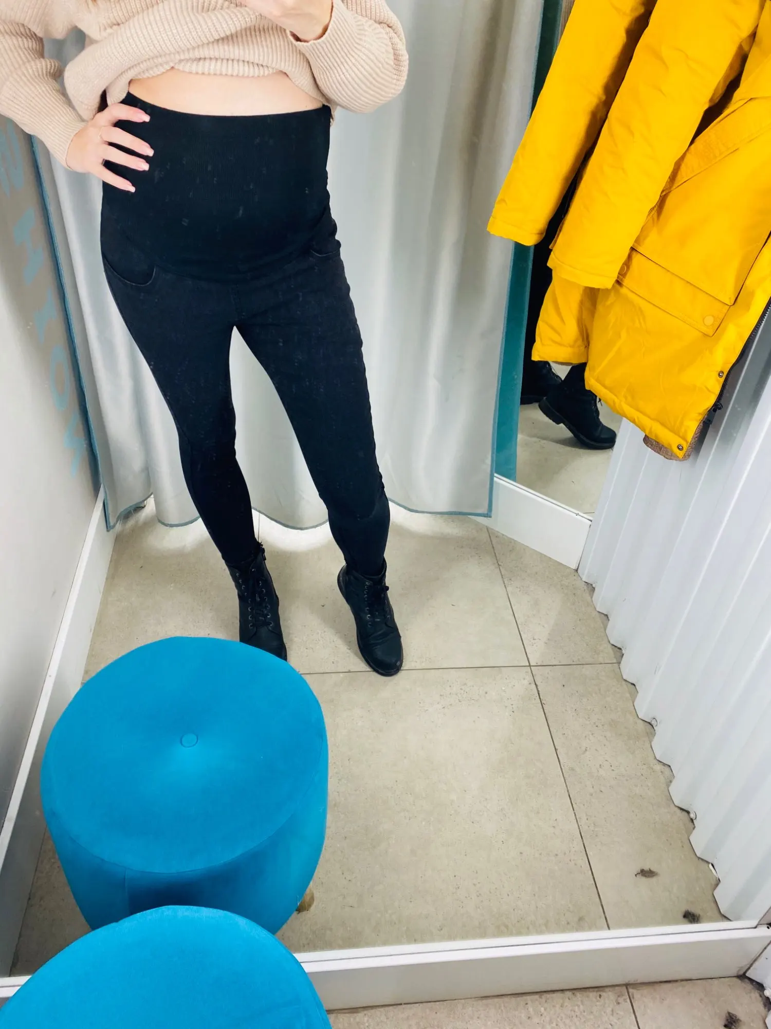 Ориентировалась на отзывы и угадала с размером. Подошли идеально. Вес 65, рост 170, сейчас 6 мес. место для живота достаточно на вырост. Джинсы не выглядят дёшево, карманы - не муляж, хорошо тянутся, швы ровные, доставка до Киева 2 недели.
