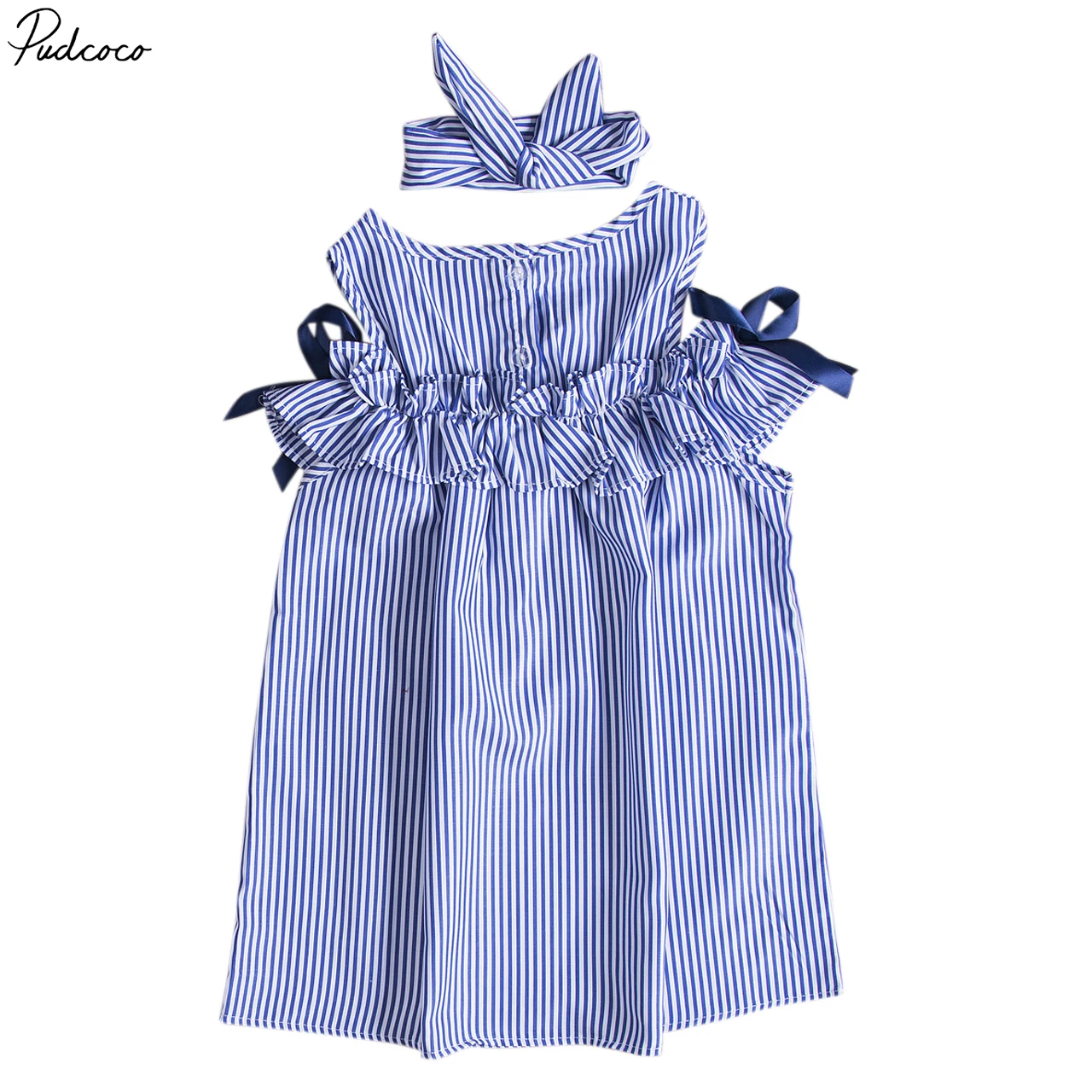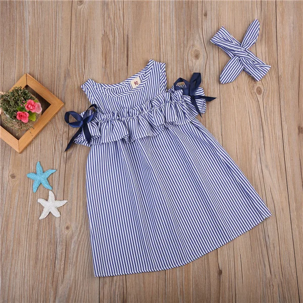PudcocoОдежда для маленьких девочек Полосатое мини-платье трапециевидной формы с открытыми плечами для детей 1-6 лет, Helen115