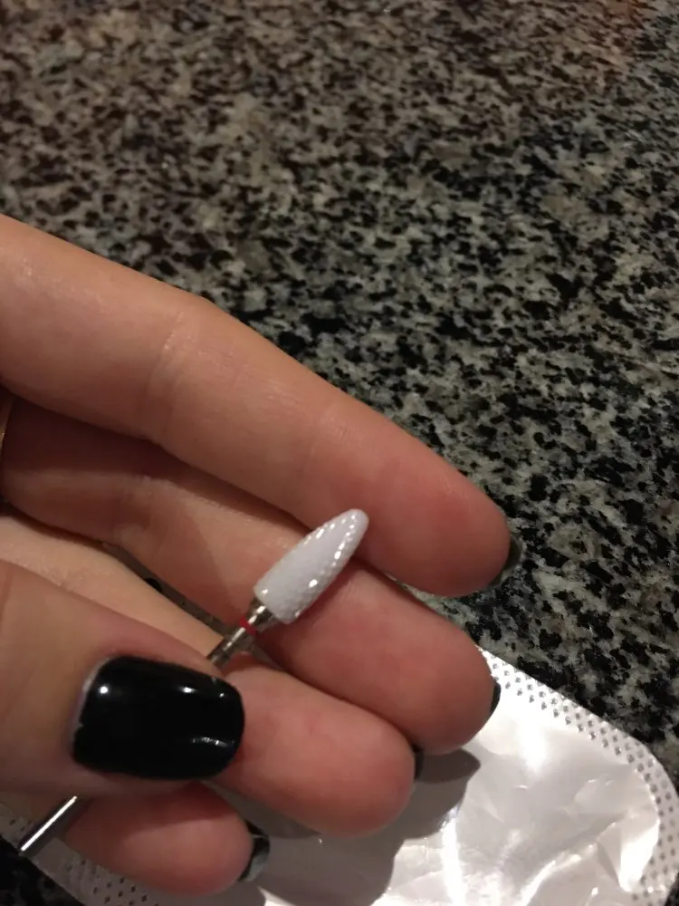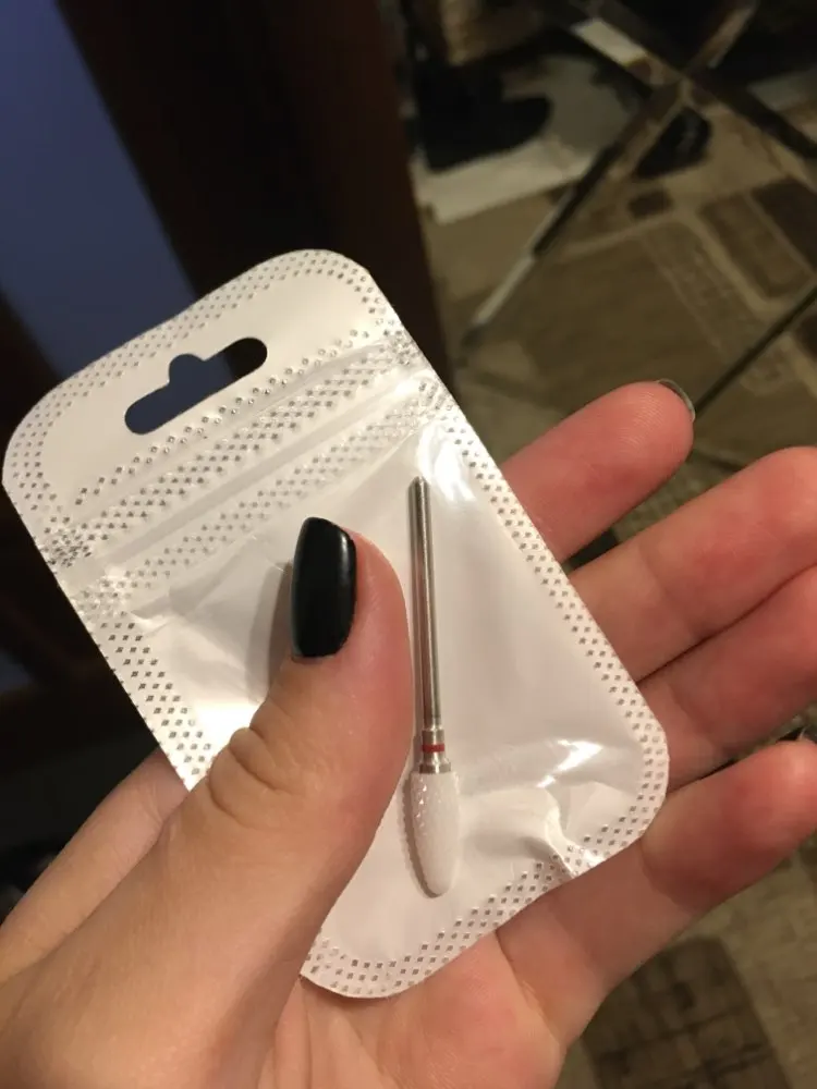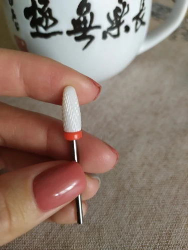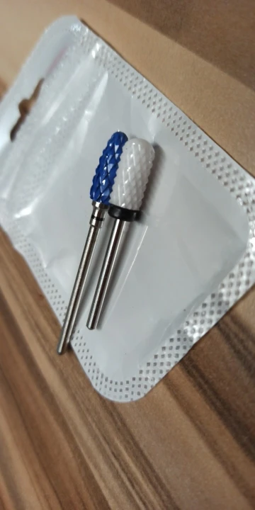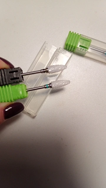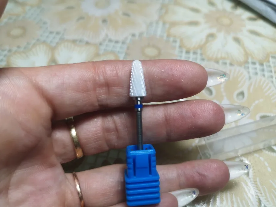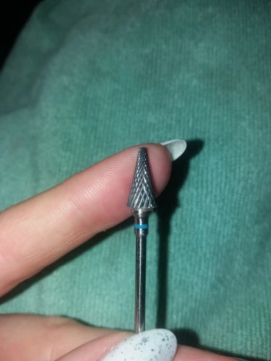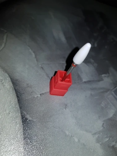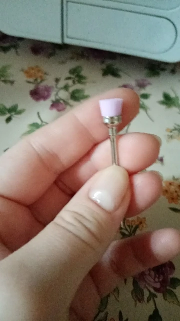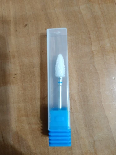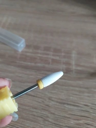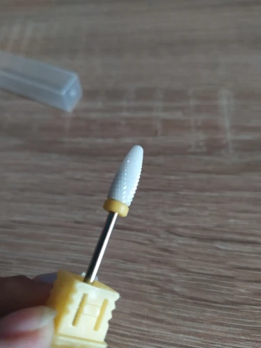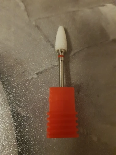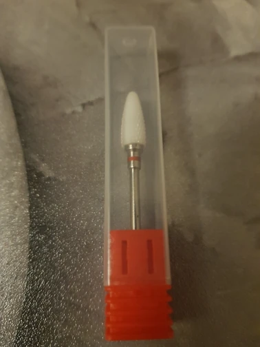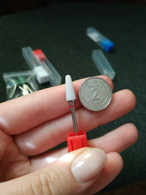 Хорошая фреза, на фото уже после использования, брала для удаления ступенек у кутикулы или под ногтем, рабочая проверхность очень маленькая, но пойдёт, с одной стороны это даже удобно. Правда не думала, что она будет короткая, в ручке сидит по самое кольцо