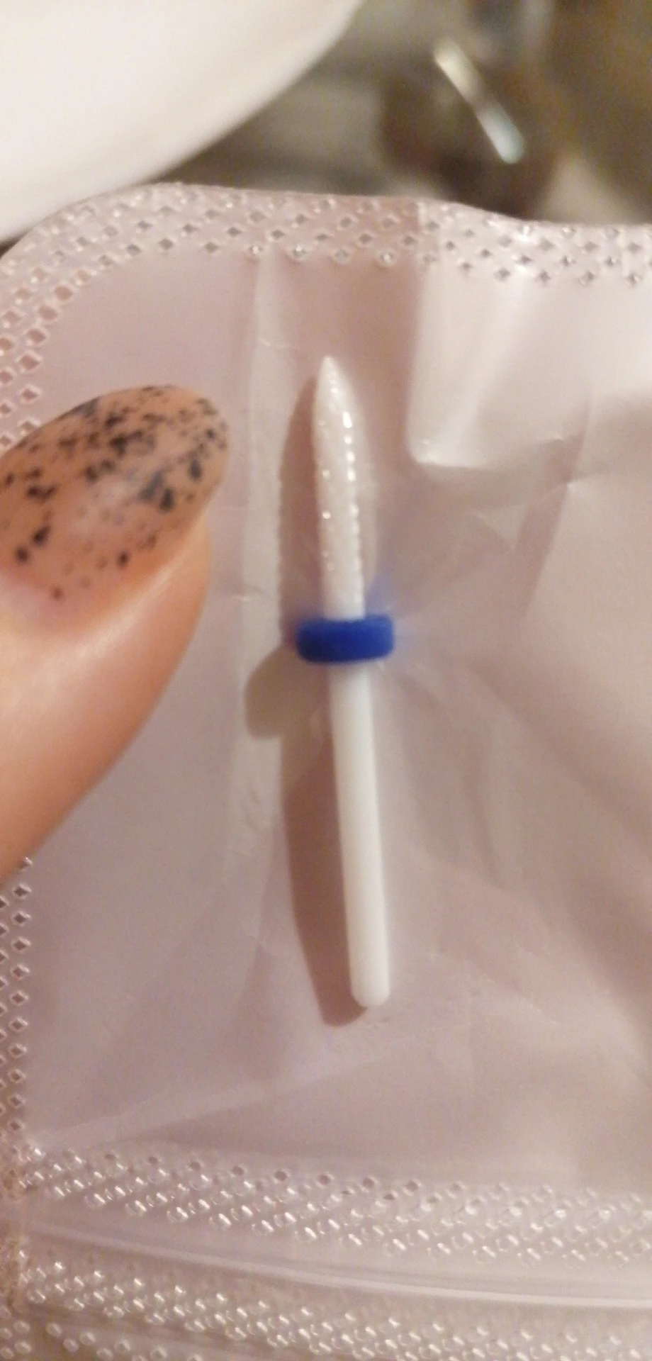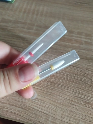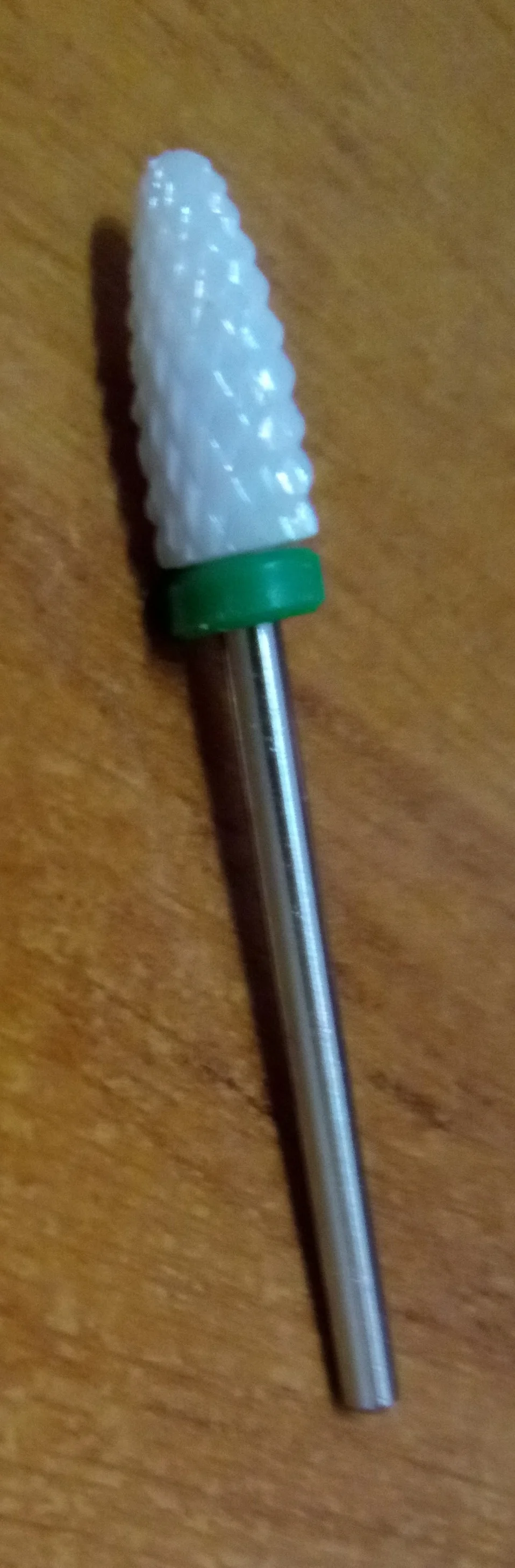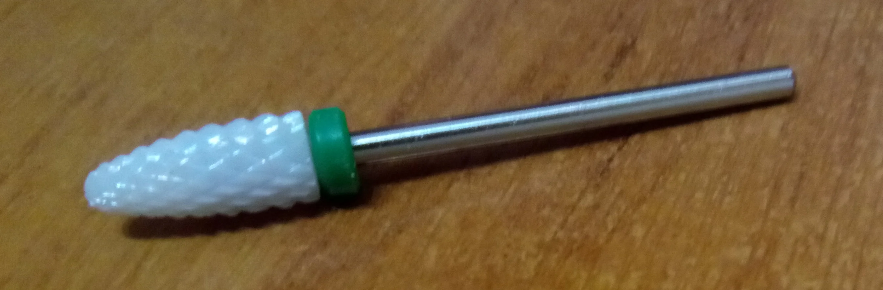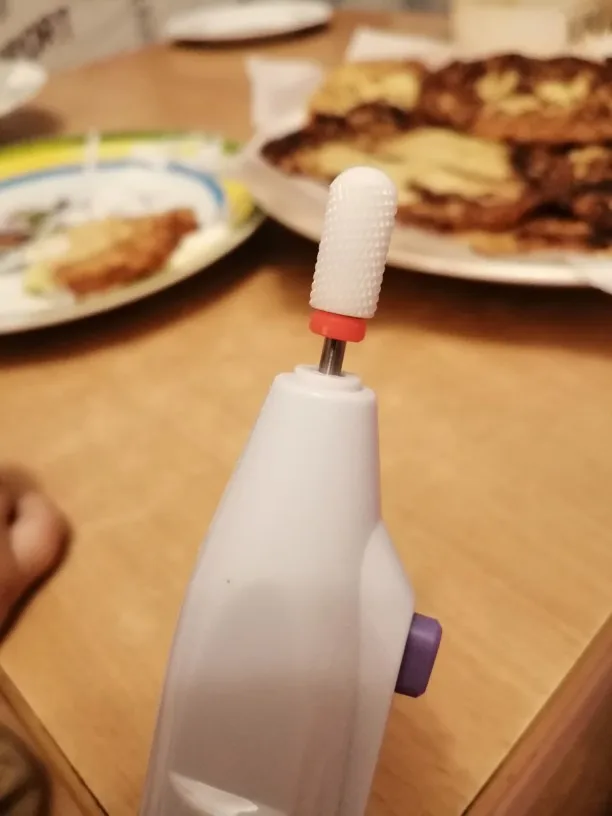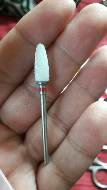 Хорошая фреза, на фото уже после использования, брала для удаления ступенек у кутикулы или под ногтем, рабочая проверхность очень маленькая, но пойдёт, с одной стороны это даже удобно. Правда не думала, что она будет короткая, в ручке сидит по самое кольцо