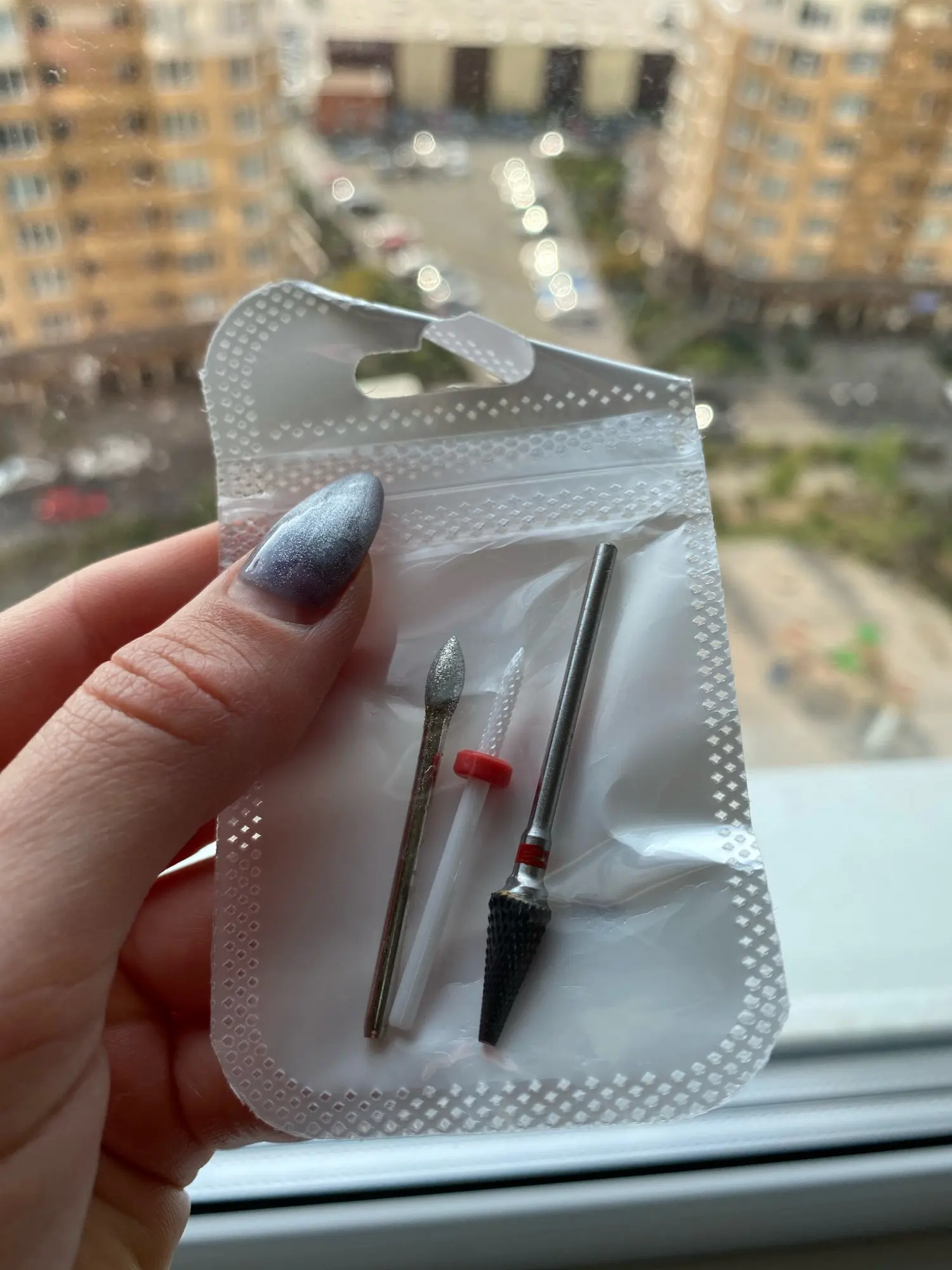 Доставка чуть больше месяца на Укрпочту. Заказывала 3 разных фрезы, для снятия гель-лака больше всего подошла розовая с синей насечкой