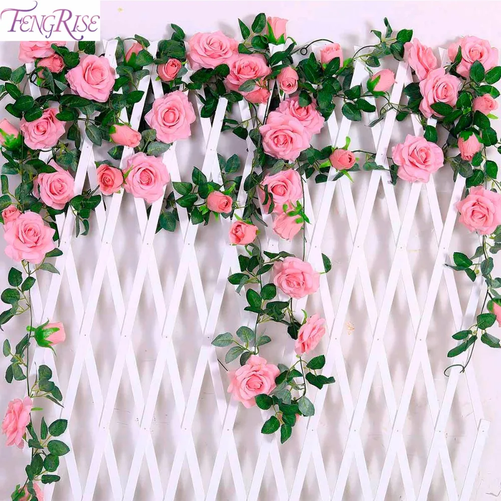 FENGRISE 2,4 млот, шелковые розы с Плющовой лозой, искусственные цветы для домашнего свадебного декора, Декоративные искусственные цветы