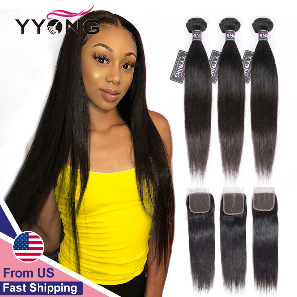 Прямые перуанские волосы Yyong, пряди из 34 натуральных прямых волос на сетке