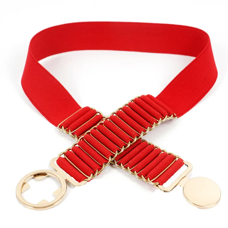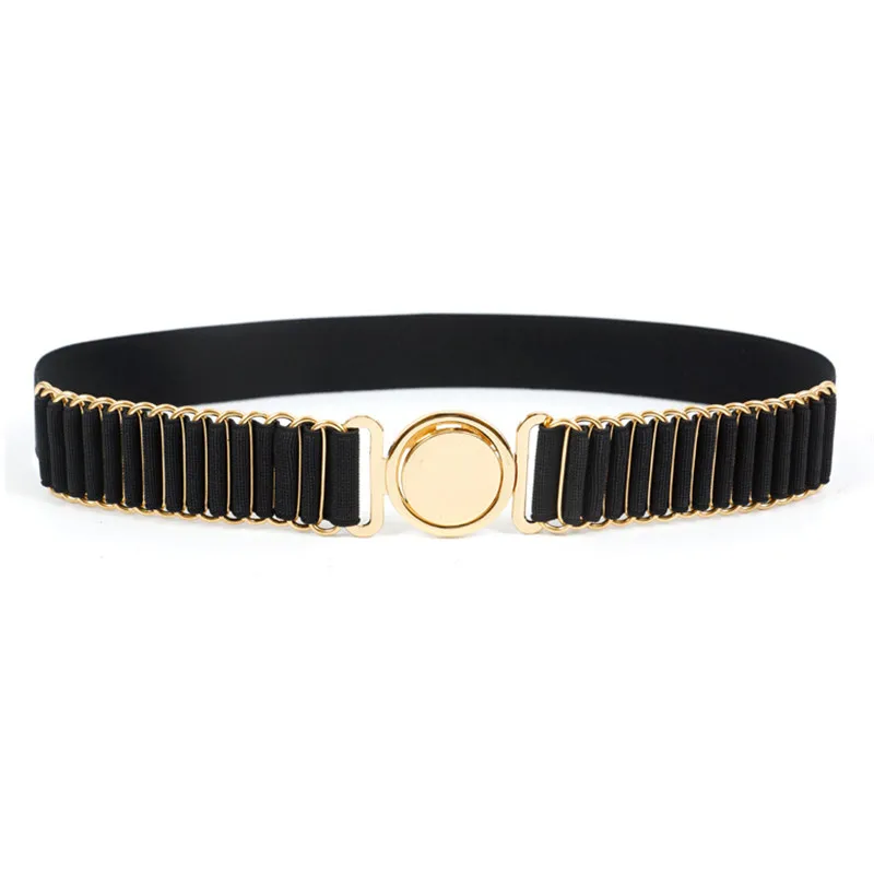 Ремень с металлической пряжкой BL201807 Женский, модный винтажный эластичный дизайнерский пояс с круглой металлической пряжкой