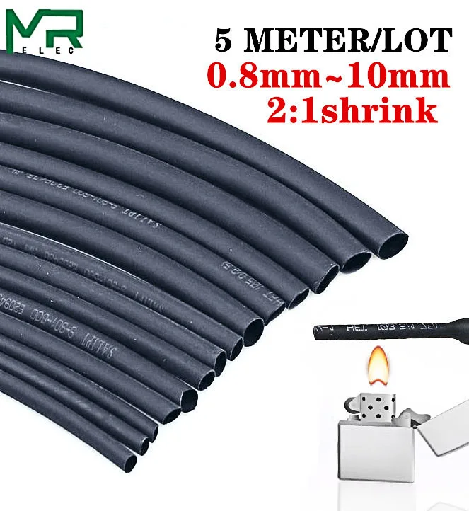 Полиолефиновая кабельная втулка, 5 млот, 1: 1, черный, 0,8 мм 10 мм, соединитель сделай сам, ремонтная термоусадочная трубка