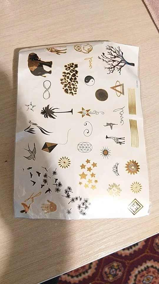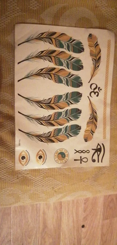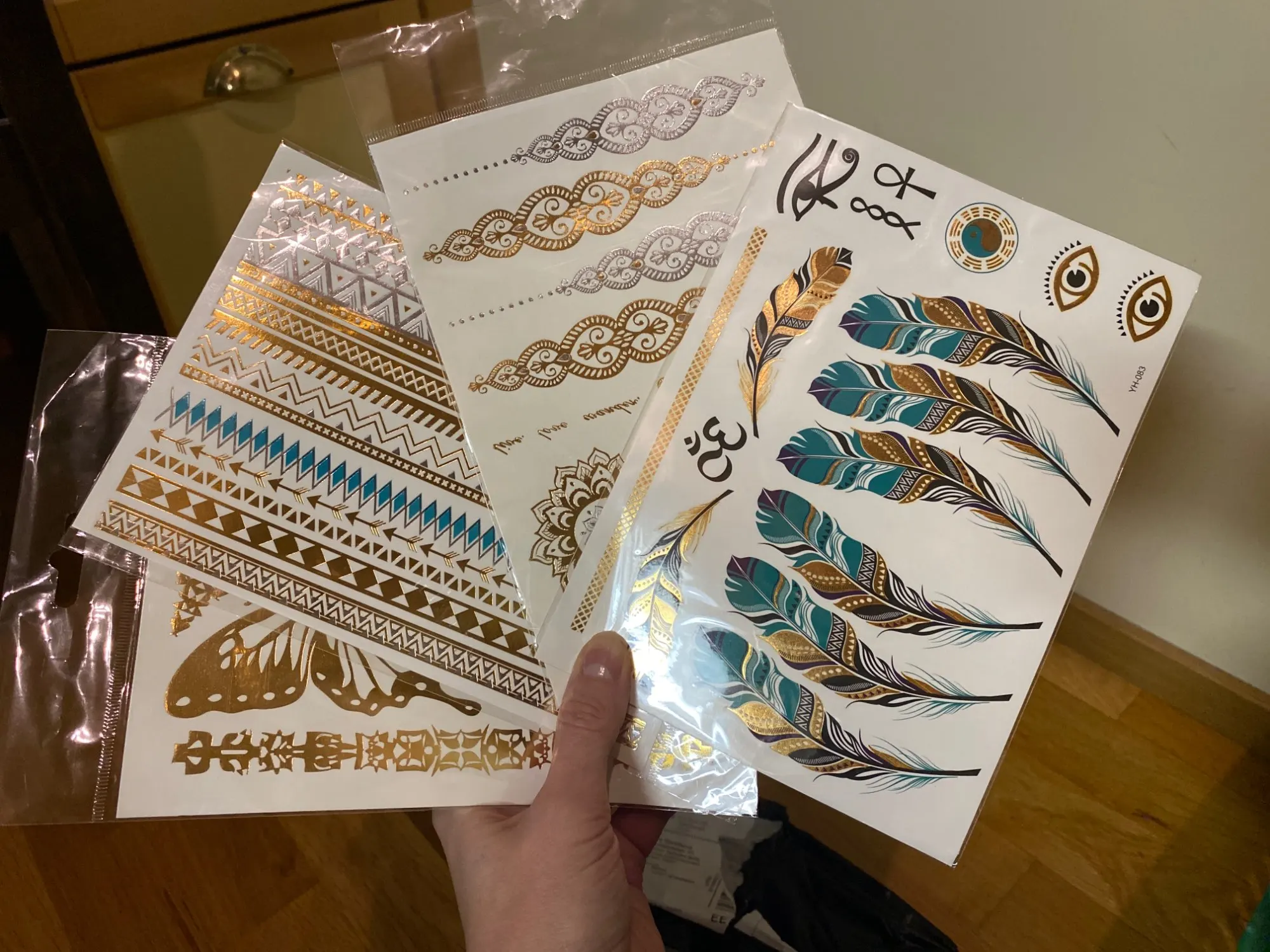 очень красивые, блестящие татушки, клеятся довольно таки легко. из минусов только липкая слой на тату