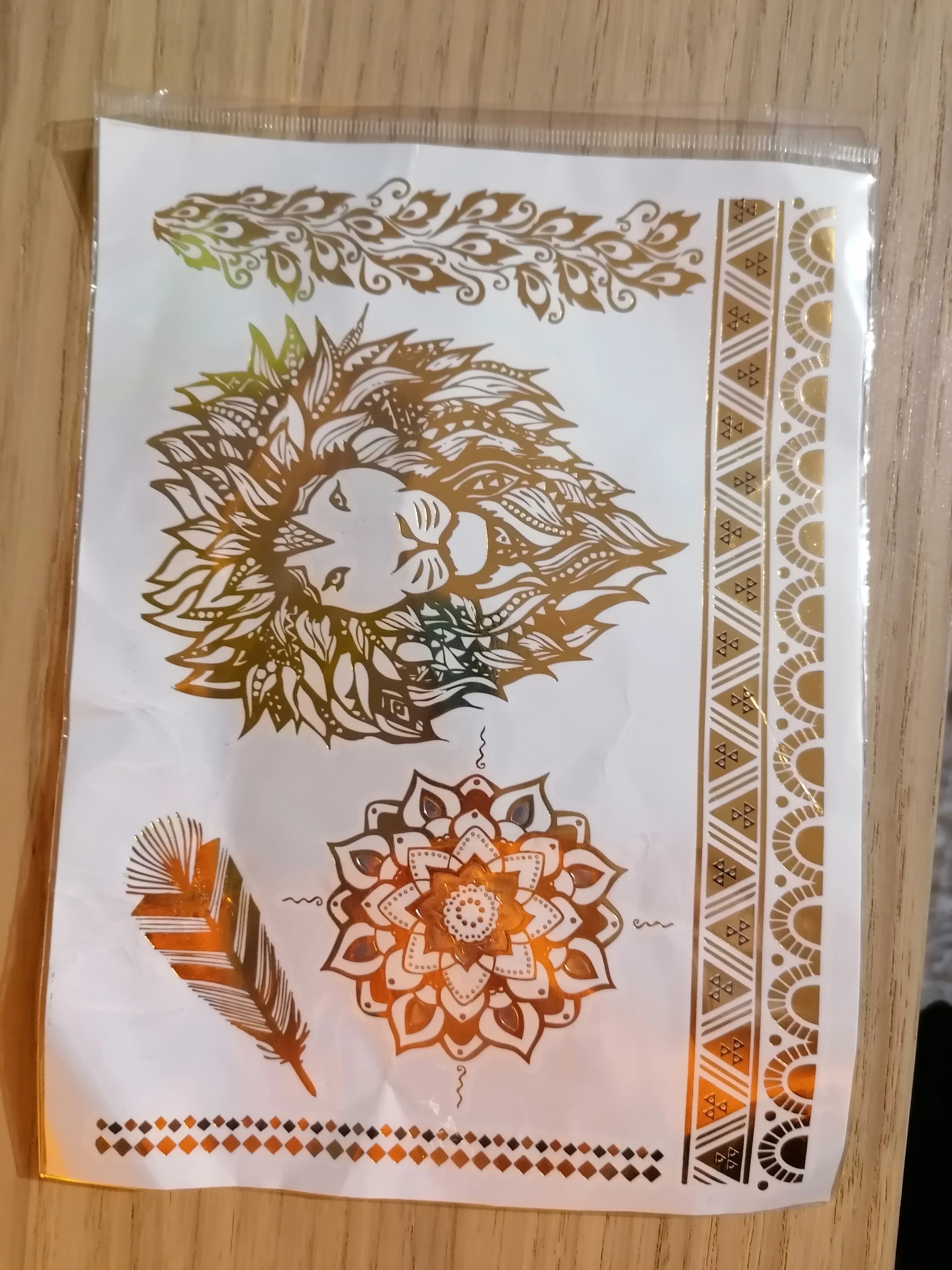 Супер тату имеет золотые рельефы, но не держит более 1 дня