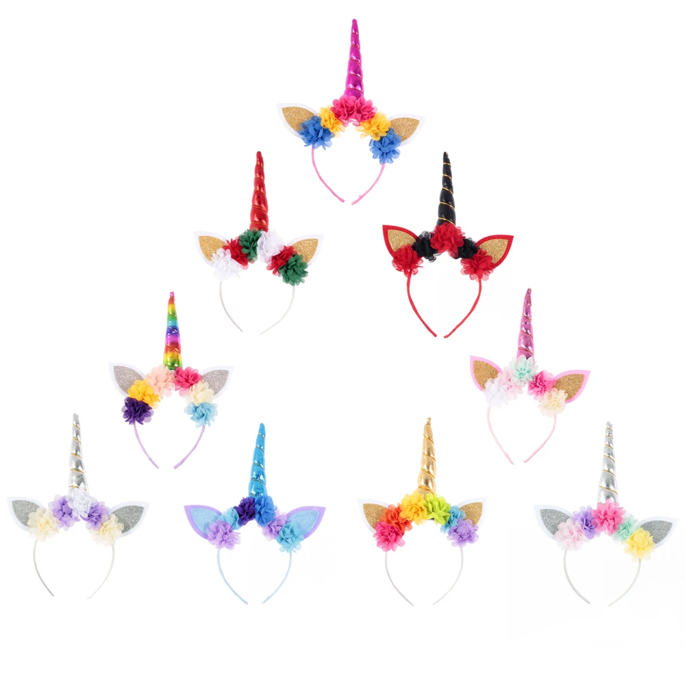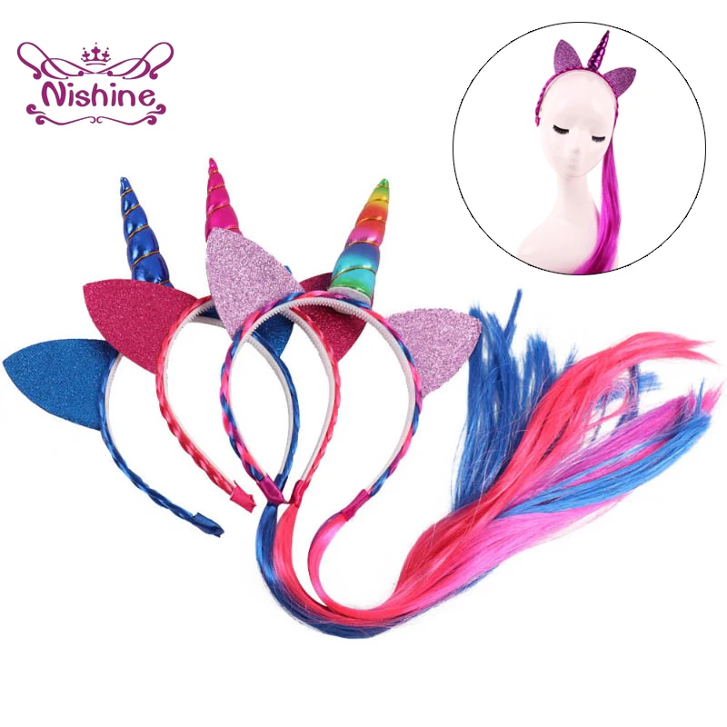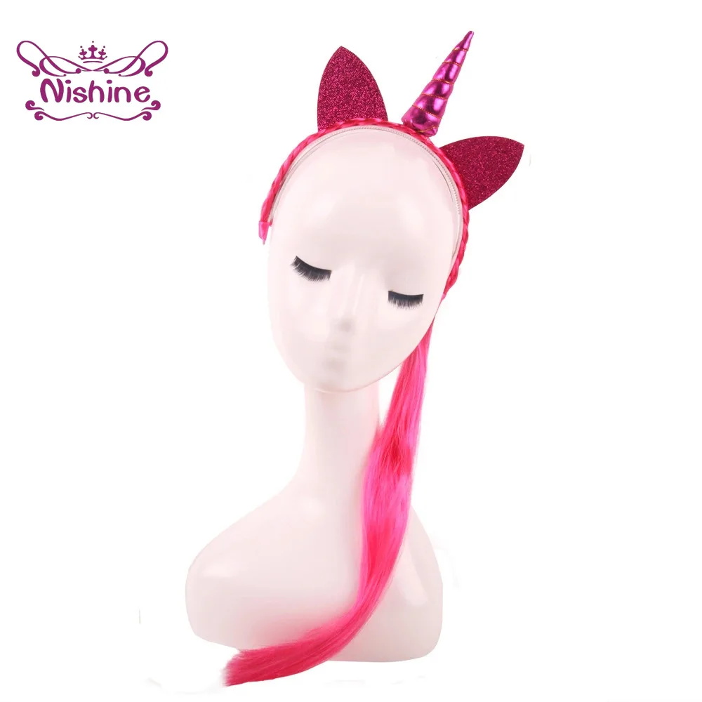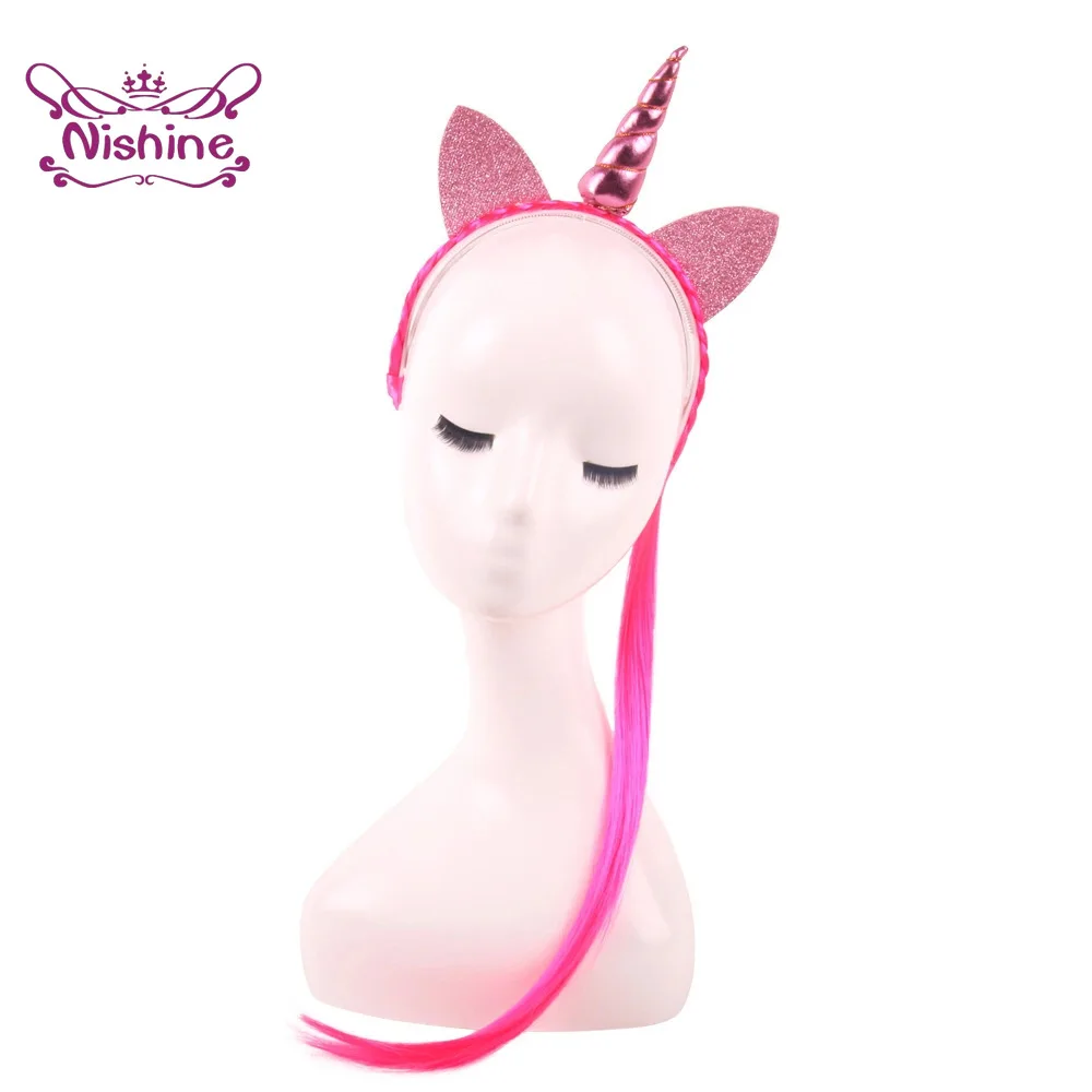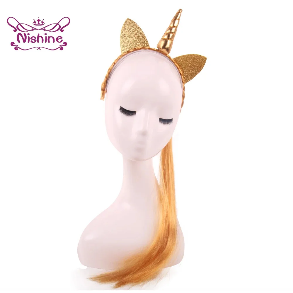 Повязка на голову для девочек Nishine, с рогом единорога, с блестками