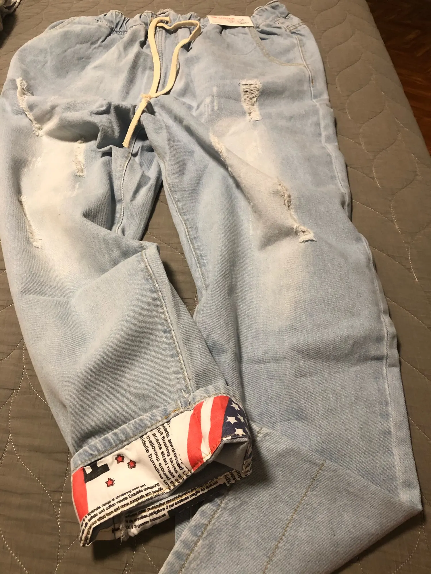 Женские свободные джинсы в стиле бойфренда с высокой эластичной талией, светильник-голубые повседневные мешковатые джинсовые брюки с манжетами для девушек, 5Xl