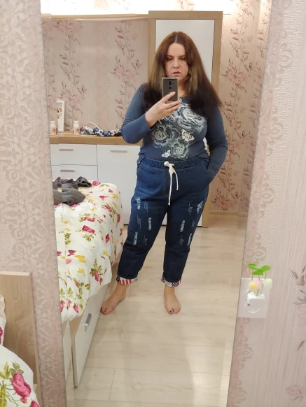 Заказ был доставлен в Украину быстро, хорошо упакован. Джинсы понравились и подошли, можно было брать на рост 161, ОБ 124 и ОТ 90 на размер меньше, но и так нормально, слегка свободно. Длина без подворота по щиколотку, как и хотела. С поворотом тоже хорошо. Ткань плотноватая, цвет голубой. Большое спасибо продавцу за оперативность.