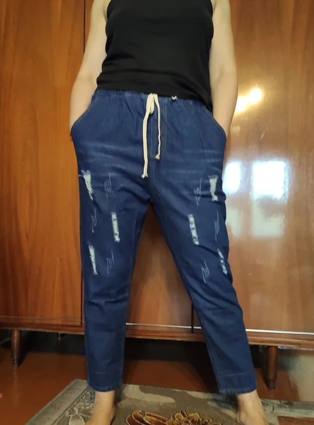 Штаны пришли нереально быстро - всего лишь за 2 недели! Сами штаны качественные, красивые, очень плотный джинс, без эластана. Но не нравится как сидят на мне, надо было заказывать на размер меньше - 4 XL. Спереди получился пузырь, мотня висит очень низко, не знаю это пошив такой или потому что размер большой. Из-за этого чувствую себя в них не очень комфортно. Мои параметры о. т. - 100, о. б. - 120.