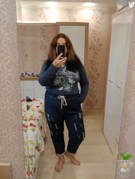 джинсы крутяк,заказывала вторые,т.к первые не угадала с размером на 54 р,заказала 4xl,сидят очень хорошо.Спасибо,рекомендую продавца!