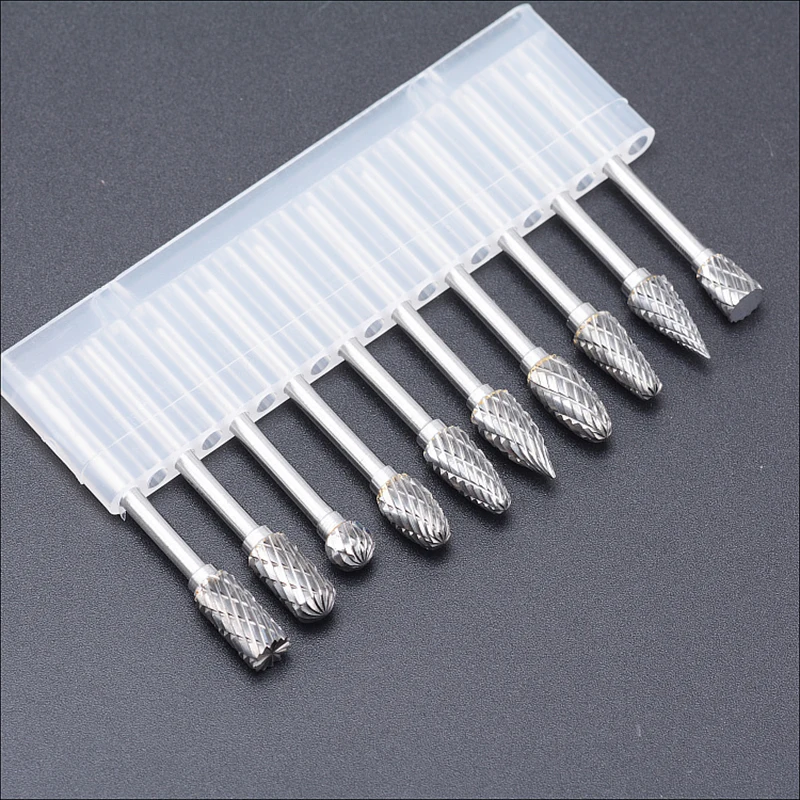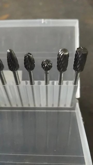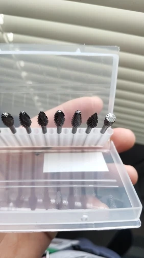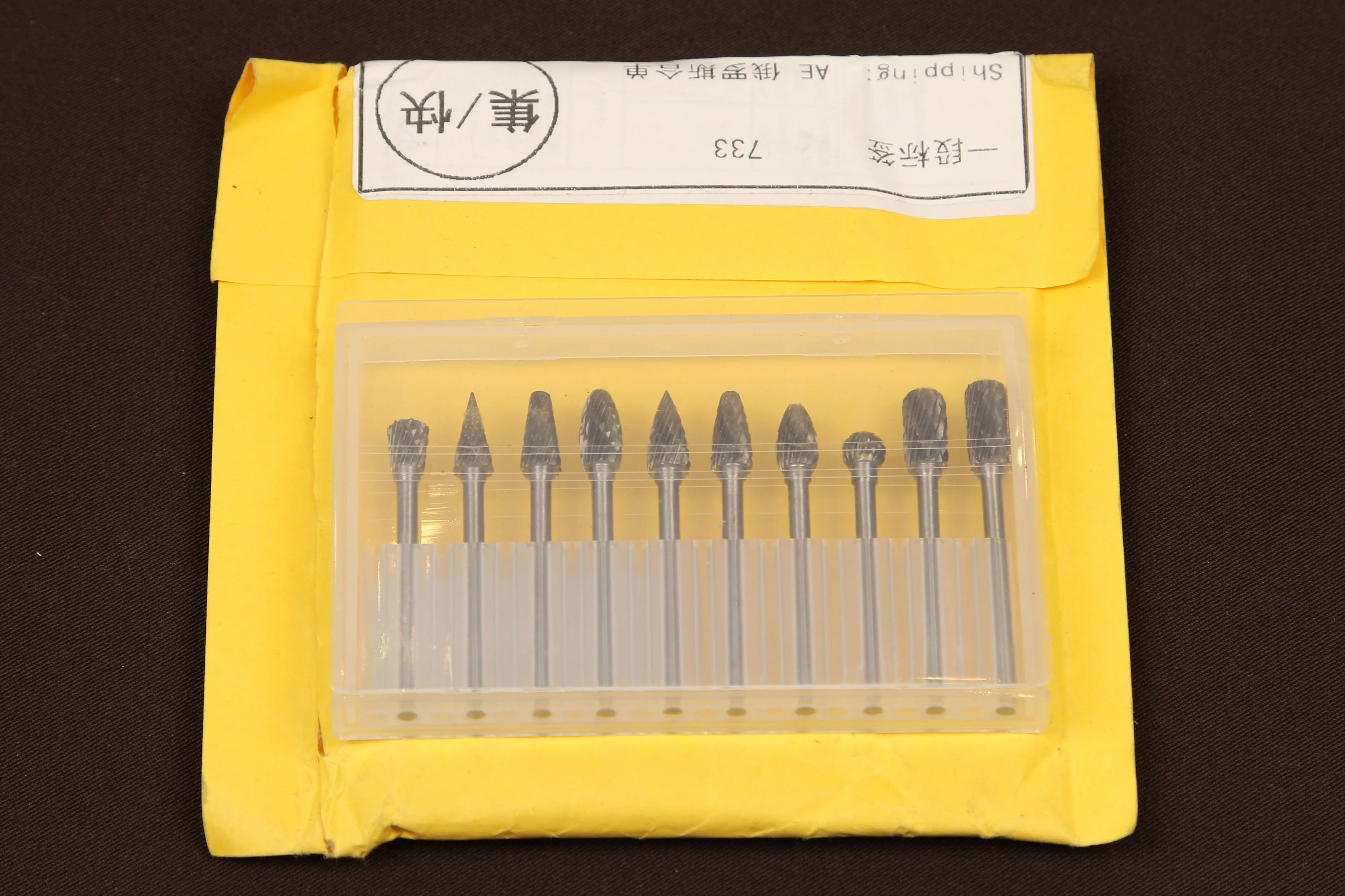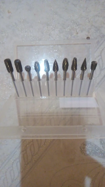 Десять различных формовых шлифовальных заусенцев. Не уверены, сделаны ли они из карбида вольфрама, но выглядят довольно достойно. Некоторые из больших заусенцев имеют Скошенные отверстия для более быстрого удаления материала. Единственное, что остается, это проверить, насколько хорошо эти заусенцы действительно удаляют материал.