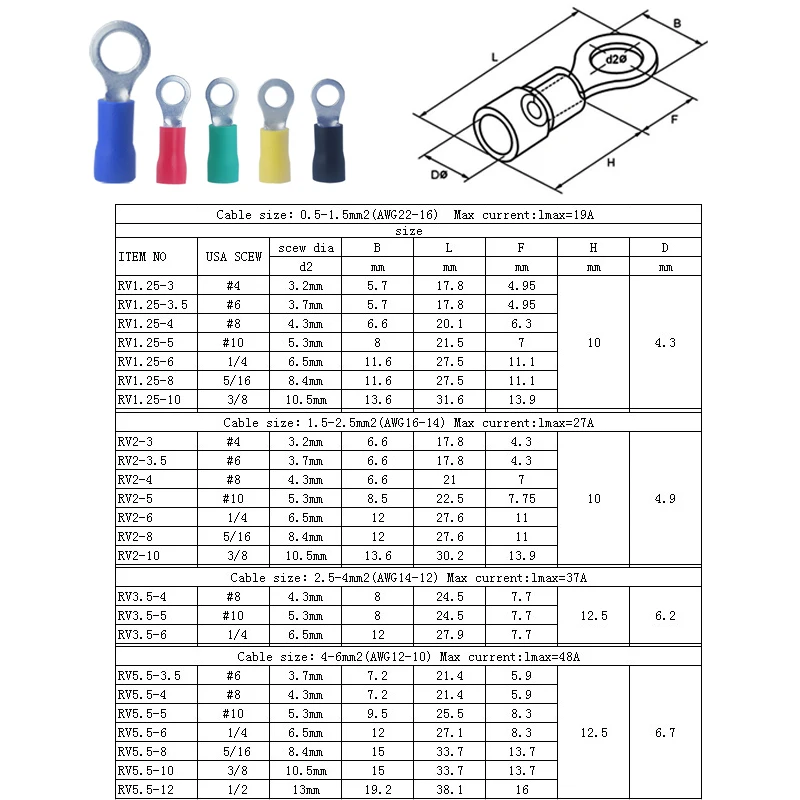 VSELE 1000 шт.упак. кольцо обжимной изоляции RV2-3 RV2-4 RV2-5 RV2-6 RV2-8 RV2-10 для 1,5-2.5mm2 Кабельный разъем