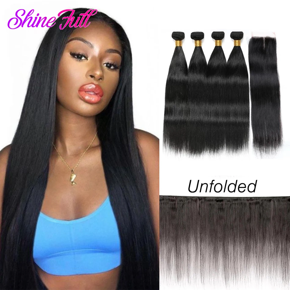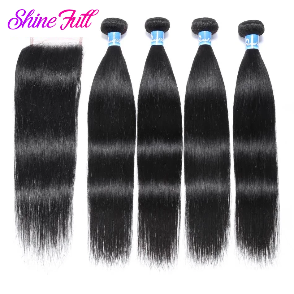 ShineFull, прямые бразильские человеческие волосы, тканые пучки с застежкой, 100% человеческие волосы Remy, волосы естественного цвета, прямые волосы