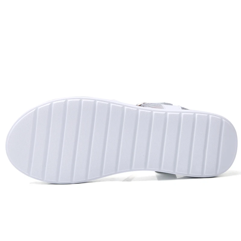 Женские пляжные сандалии из натуральной кожи, серебристые и белые шлепанцы на платформе, летняя обувь на среднем каблуке, женские туфли на плоской подошве
