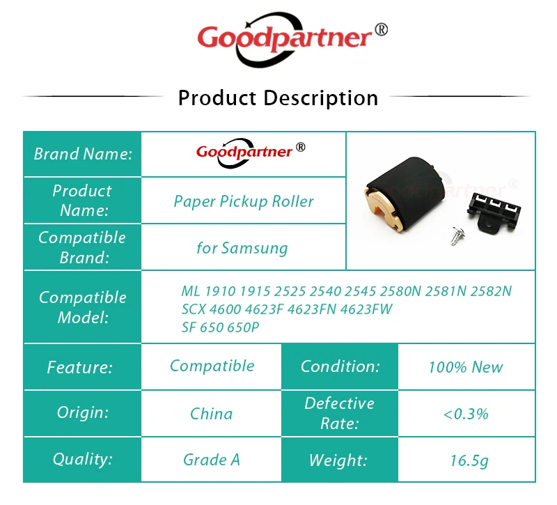 Ролик для захвата Samsung SF 651, 651P, SCX 4600, 4601, 4623, 4623FH, 4626 мл, 1910, 1911, 1915, 2525, 2526, 2580, 2581, 2581N, 650, SF651, 1 шт.