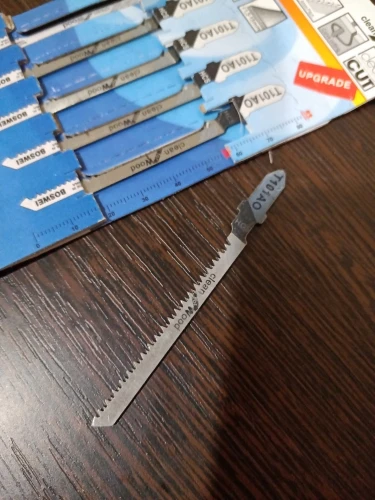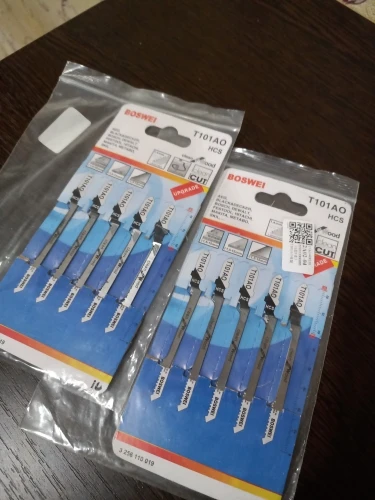 Пилки как в описании и на фото. Заказываю здесь уже во второй или третий раз. Копия фирмы "Бош". В работе ведут себя нормально, дерево пилят на "ура". Острые. Подходят больше для фигурной резки. Доставка до Владимирской области, г. Муром два месяца. Трек отслеживался только по территории Китая.