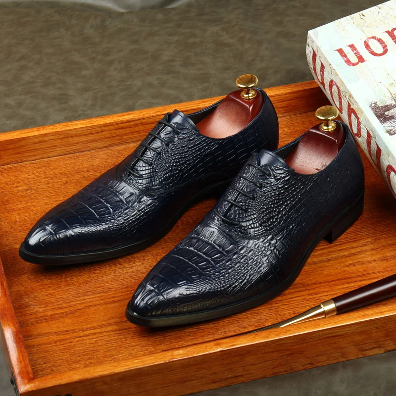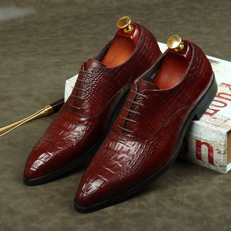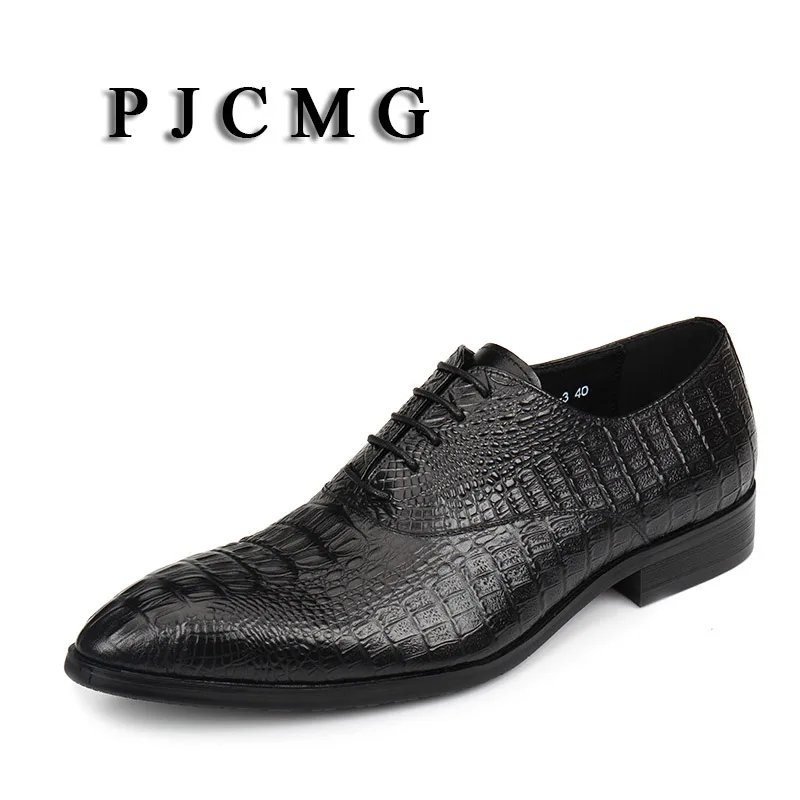 PJCMGНовинка; Цвет черный, красный, синий; Туфли-оксфорды на шнуровке с узором крокодиловая кожа; свадебные мужские туфли из натуральной кожи с острым носком; деловые туфли для работы
