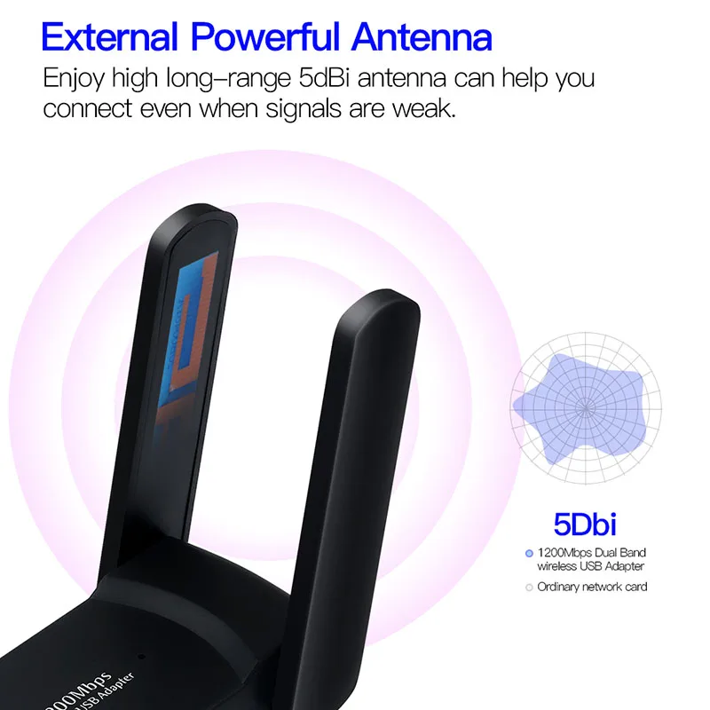 USB Wi-Fi адаптер 1200 Мбитс, Двухдиапазонная беспроводная сетевая карта Lan, Wi-Fi приемник 802.11ac Wi-Fi внешний для рабочего стола