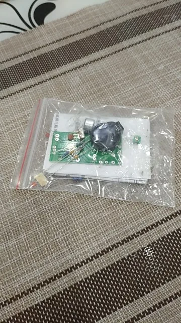 Упаковка стандартная-пупырка. Доставка до Беларуси месяц. Всё целое, собирается легко и быстро, хороший звук. Идеально подходит для обучения подарка начинающим радиолюбителям, проблем нет, можно брать. Частота на которой мой экземпляр работает 102,6 MHz. Недостатки: Небольшое расстояние, потеря качества при увеличении преград. Схема радует, но описание хотелось бы хотя бы на английском языке.