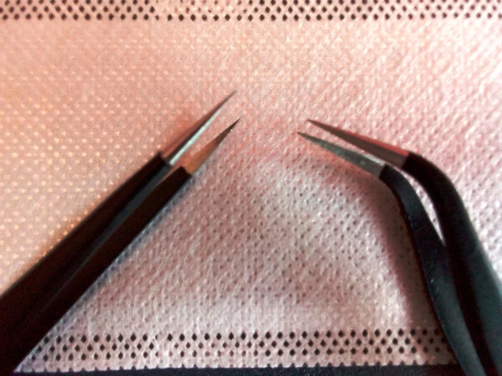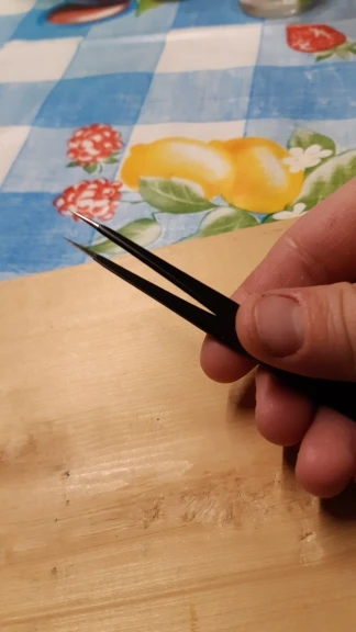 Вот он пинцет здорового человека (справа на фото) толщина металла губок 1.5, с покрытием 1.68 (покрытие толстое) полукруглая заточка концов. Слева пинцет купленный ранее по дешёвке набором 6 штук у другого продавца, толщина металла 0.98 с покрытием (скорее краской) заточки никакой нет, гнутся как фольга. Берите в этом магазине не ошибётесь. Доставка быстрая.
