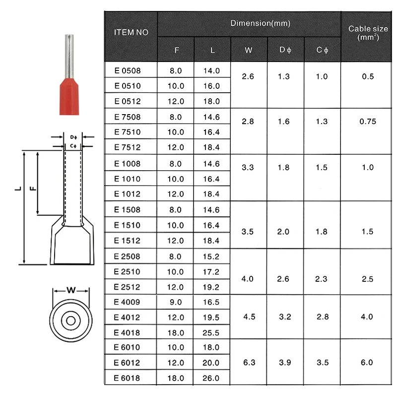 1000 шт.лот труба изоляционные терминалы E0510 E7510 E1010 E151012 E251012 E4012 E6012 изолированный кабель обжимной разъем для проводов