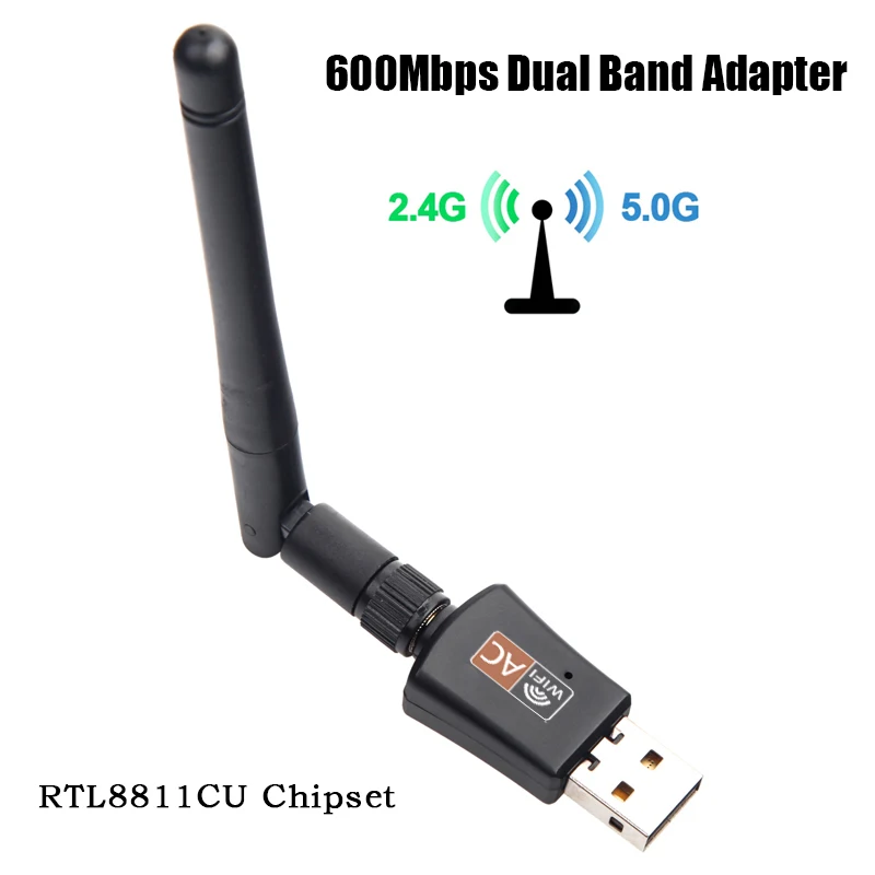 Мини USB WiFi адаптер 5 ГГц + 2,4 600Mbps Беспроводной двухдиапазонный 802.11ac с антенной RTL8811CU для рабочего столаноутбукаПК