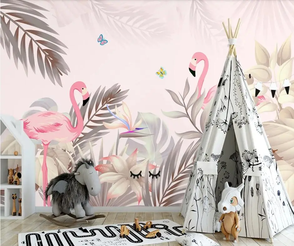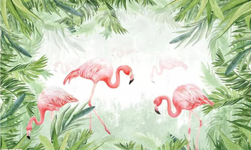 Фотообои Beibehang на заказ, фотография, ручная роспись, скандинавский тропический фон, пальма, растение, фламинго, фон для помещений, настенные фрески, 3d обои