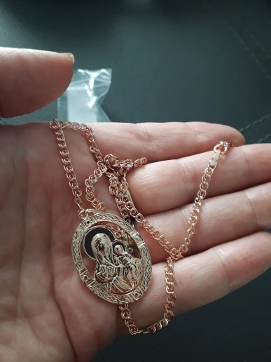 красивая икона. все устраивает. позже дополню как будет выглядеть после ношения. с продавцом не общалась