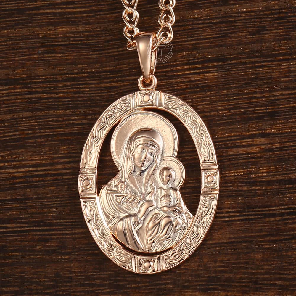 Цепочка унисекс из розового золота 585 пробы с кулоном Дева Мария, длина 50,5 см, GP192