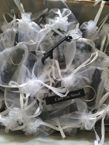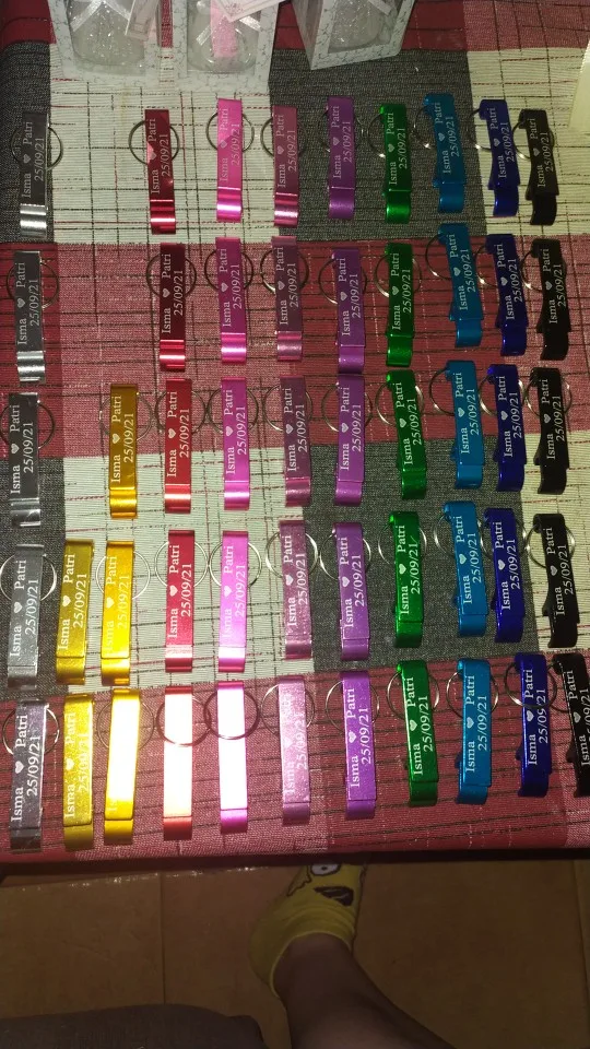 50 шт. персональный гравированный открывалка для бутылок брелки Персонализированные Свадебные подарки свадебные подарки с мешочек из белой органзы