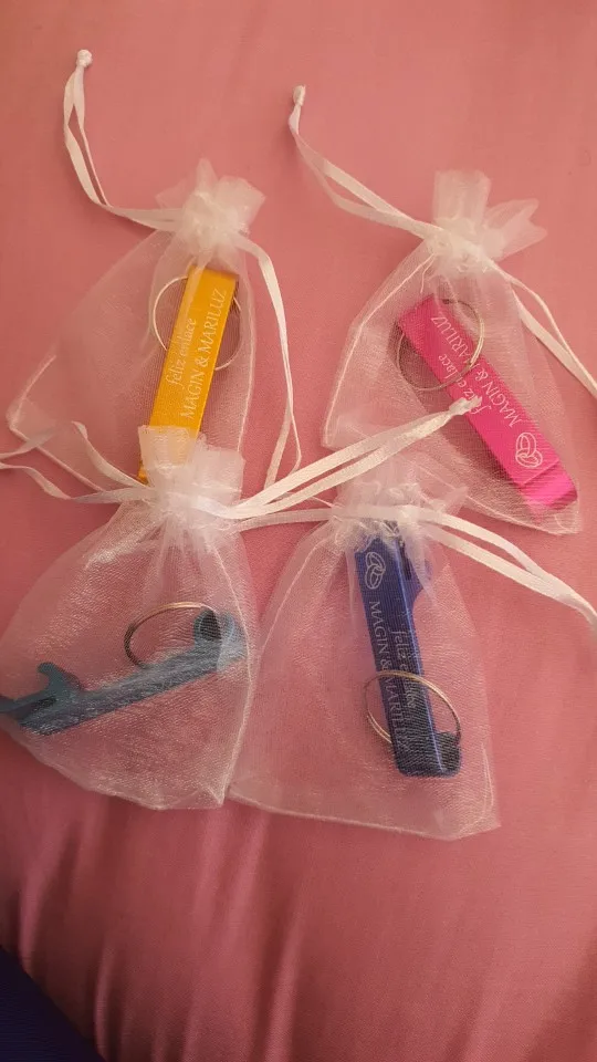 Поскольку детали свадьбы были великолепны, это деталь, которую можно настроить. Приходят разные цвета, но очень красивые, хотя есть желтые и оранжевые, которые должны быть одного цвета, и вы можете сказать, что они разные, в дополнение к тому, что две бутылки открываются без пряжки. В противном случае супер счастлив, я очень рекомендую это! Кроме того, сумки приходят, чтобы сохранить их, которые я не ожидал! Большое спасибо!