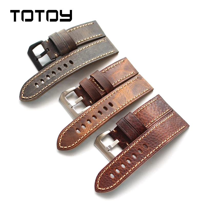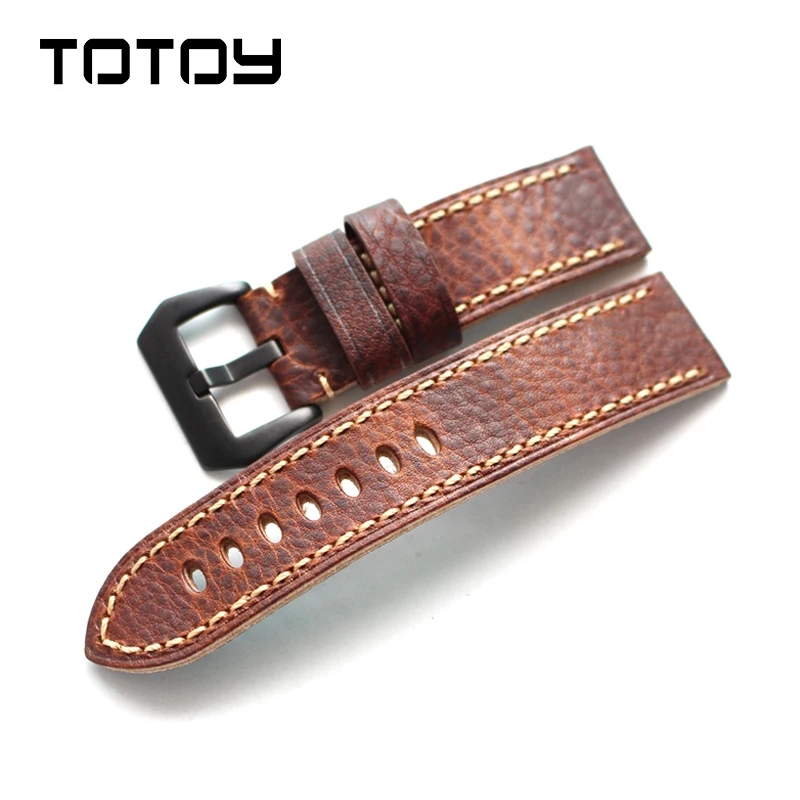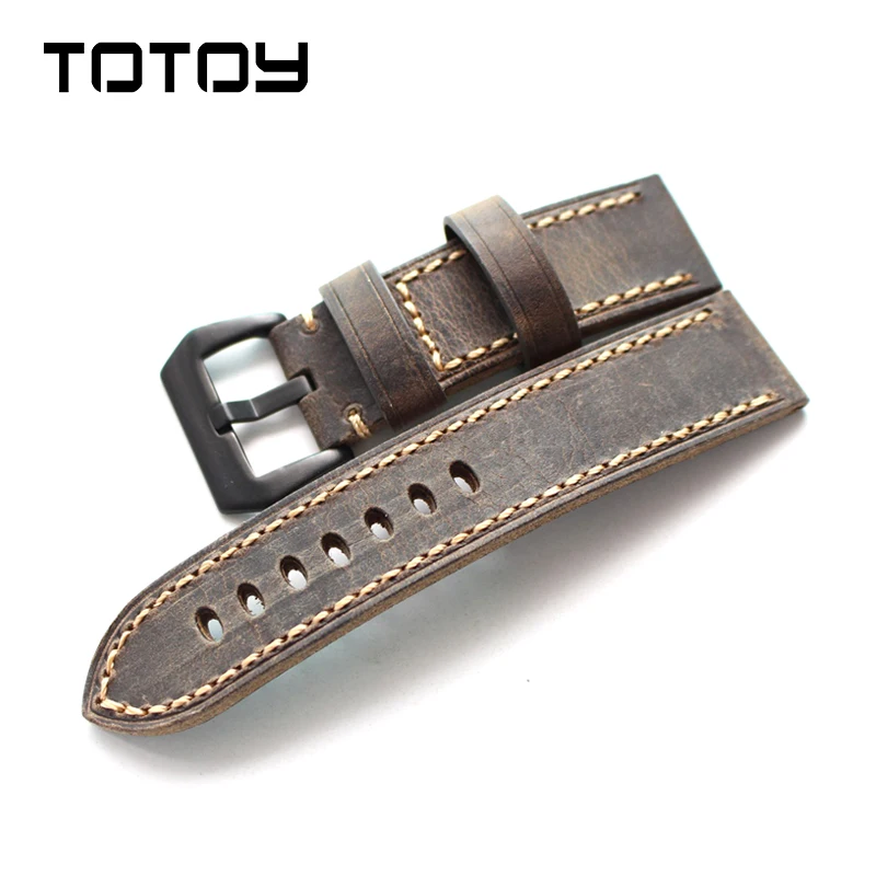 Ремешок TOTOY мужской из воловьей кожи, настраиваемый браслет в стиле милитари, Часы наручные для горного туризма, PAM, кожаный браслет, 20 22 24 26 мм