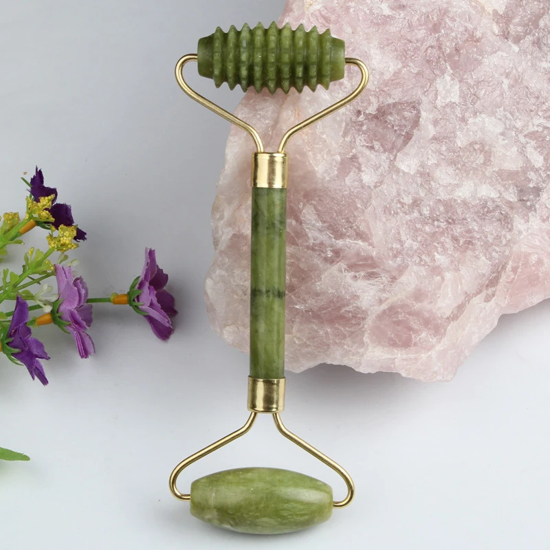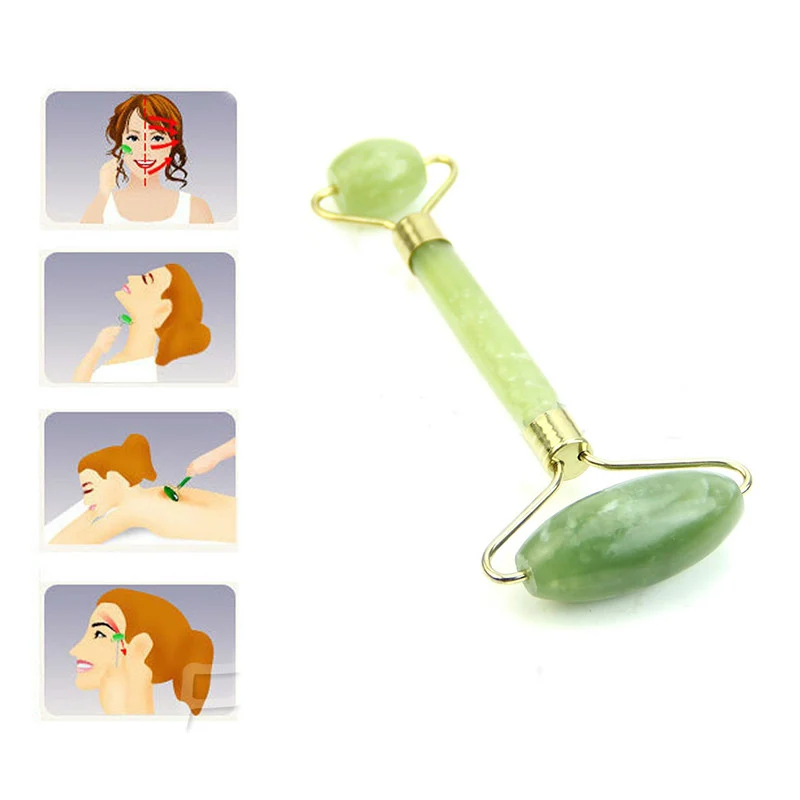 Роликовый массажер для лица с двойной головкой, нефритовый роллер для массажа лица, подтяжка лица, расслабление мышц лица, инструменты для ухода за кожей