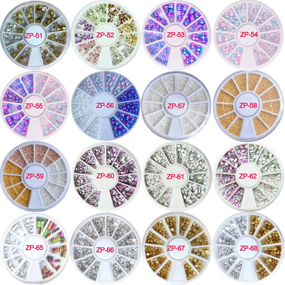 1 колесо Стразы для ногтей цветные жемчужные камни гвоздики, бусины...