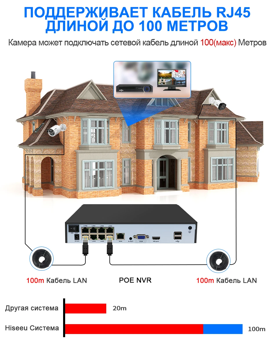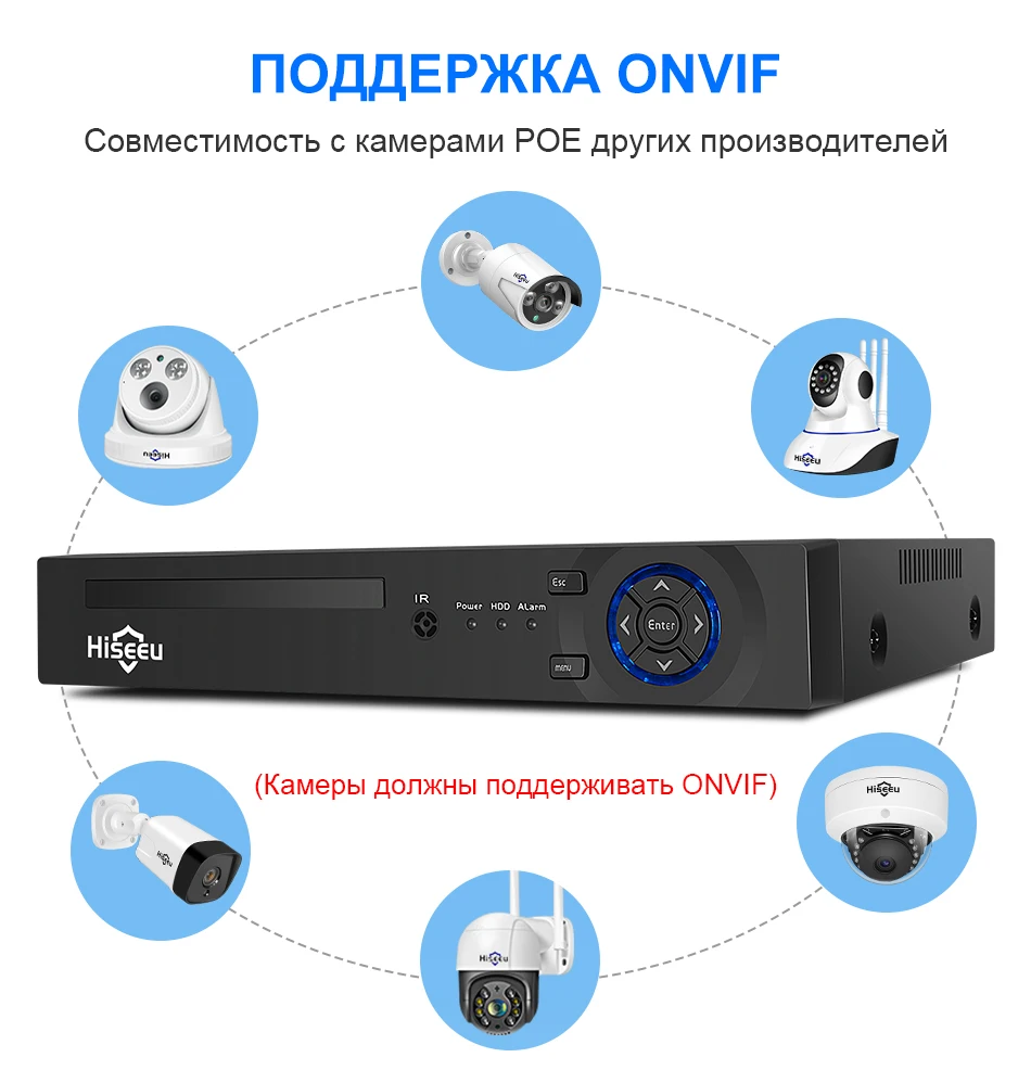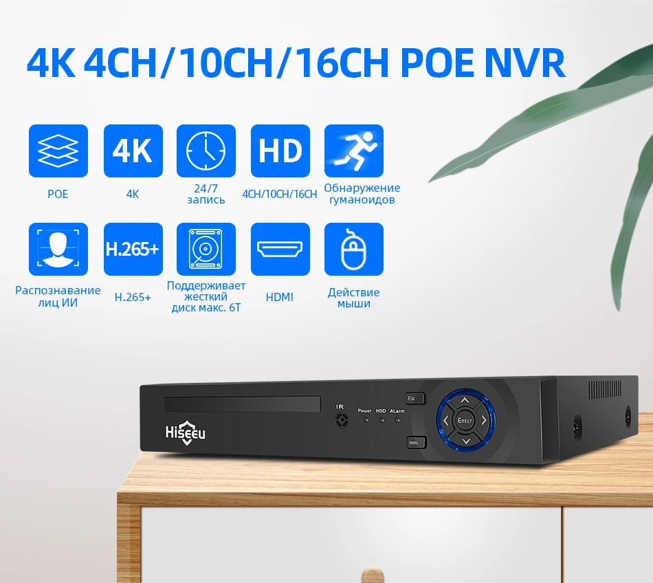 Hiseeu H.265 + 4CH 10CH 16CH POE NVR для IP камеры видеонаблюдения CCTV система 5MP 8MP 4K Аудио Видео рекордер распознавание лица