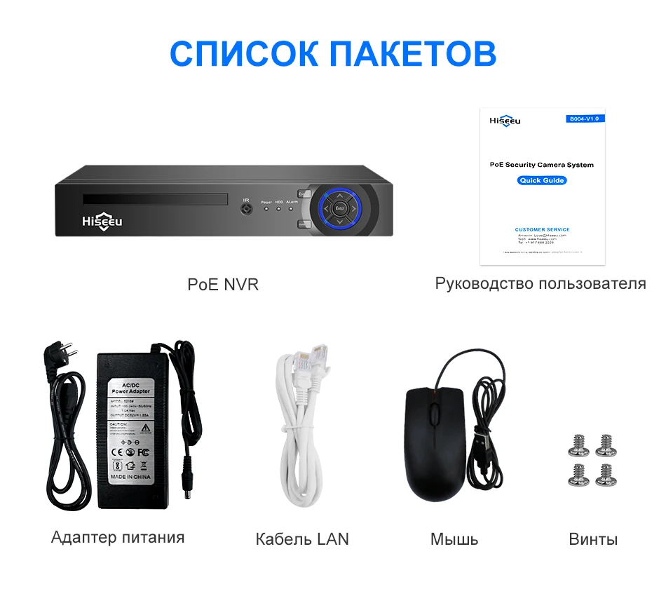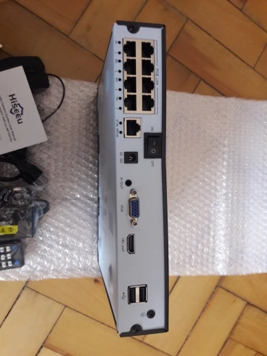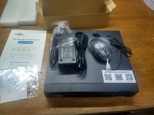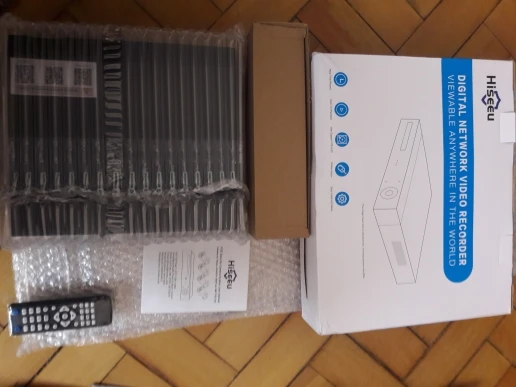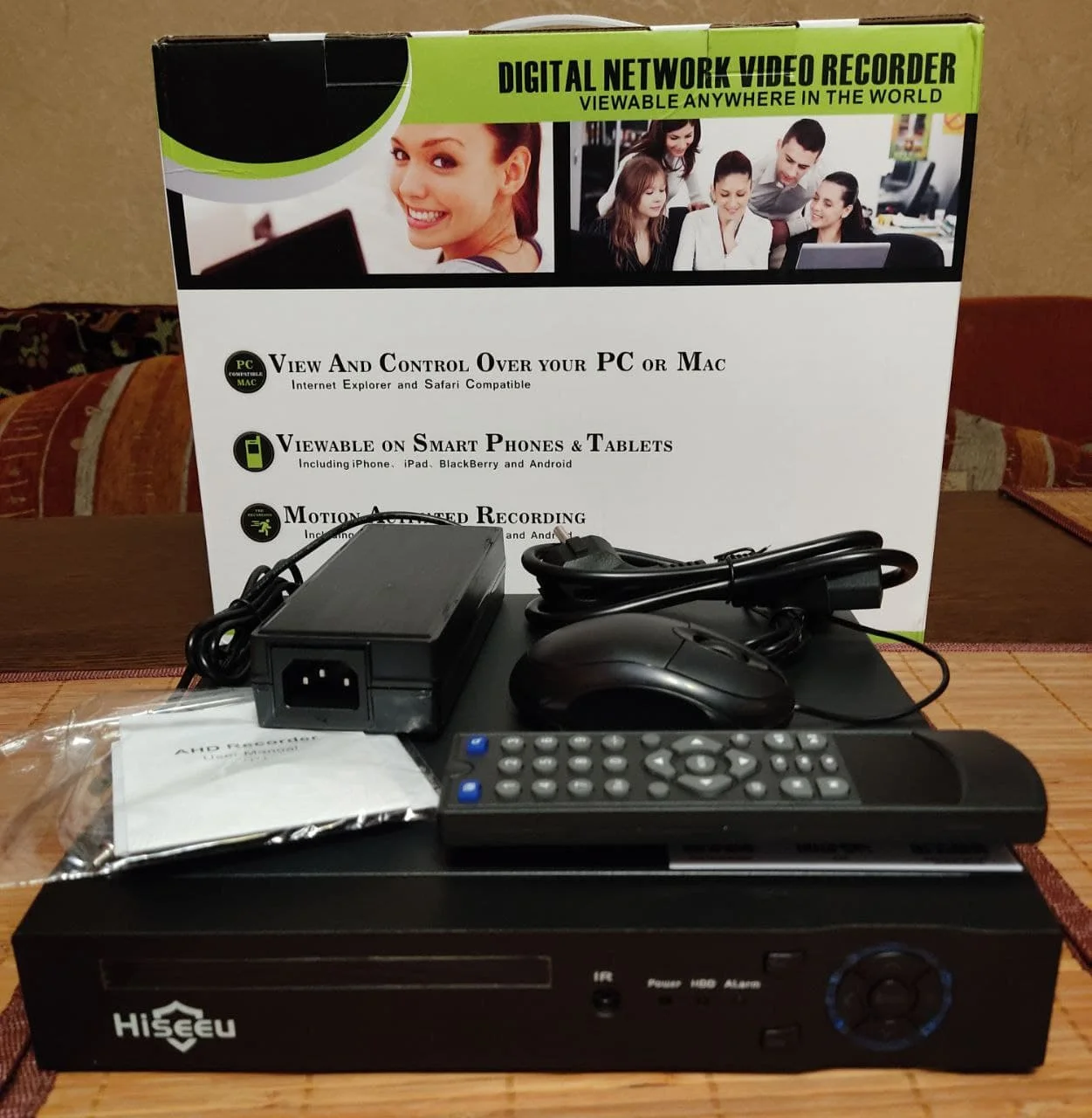 Товар доставлялся в Украину компанией Мист-Экспресс. Ехал ооочень долго. 2 месяца. Месяц по Китаю, потом через Казахстан и Польшу. Доставкой в корне не доволен. Но здесь нет вины продавца. Товар соответствует описанию. Все работает. Корпус регистратора металлический, но металл тонкий. Пластик пульта и мышки немного воняет. В остальном все ок. 2 камеры того же брэнда подключились по POE без проблем. Определились моментаьно. P.S.: Жесткий диск на фото не комплектный. А мой старый.