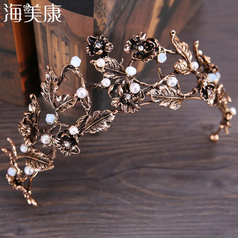 Женская Бронзовая повязка на голову Haimeikang, элегантная свадебная тиара в форме цветка, короны и жемчуга из сплава
