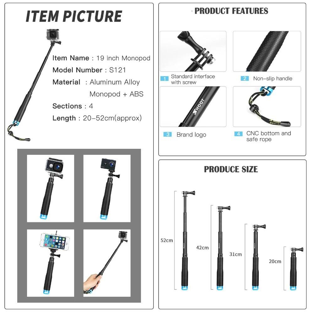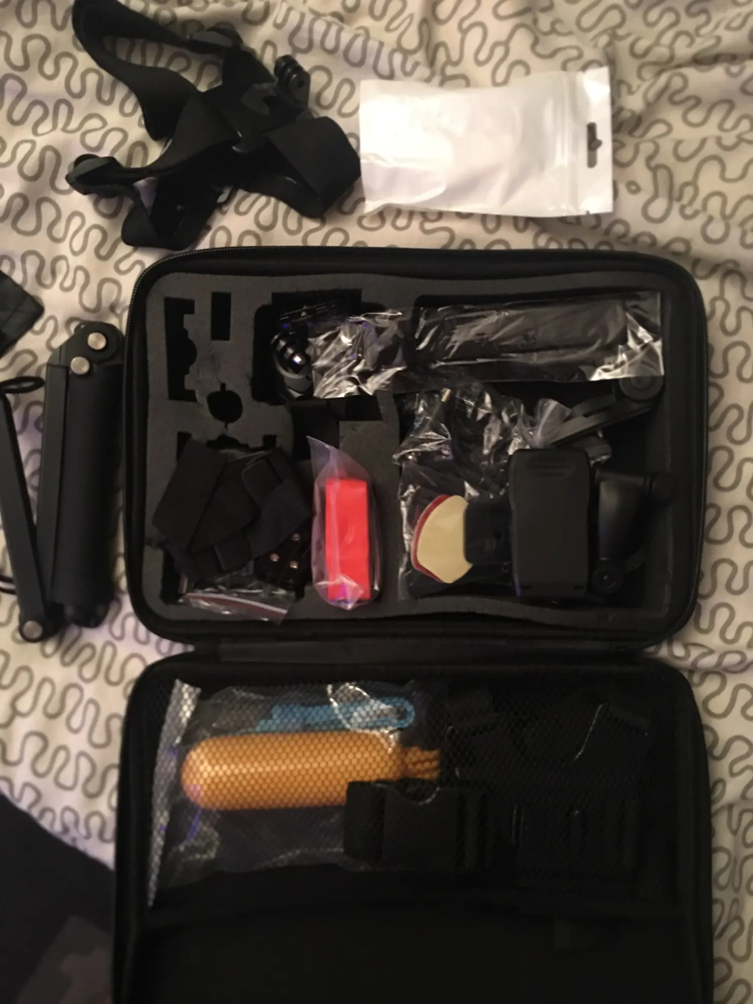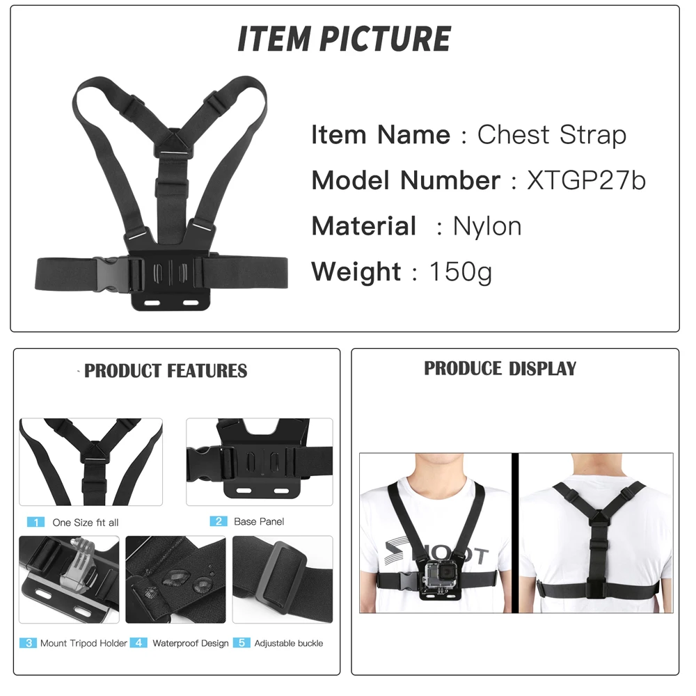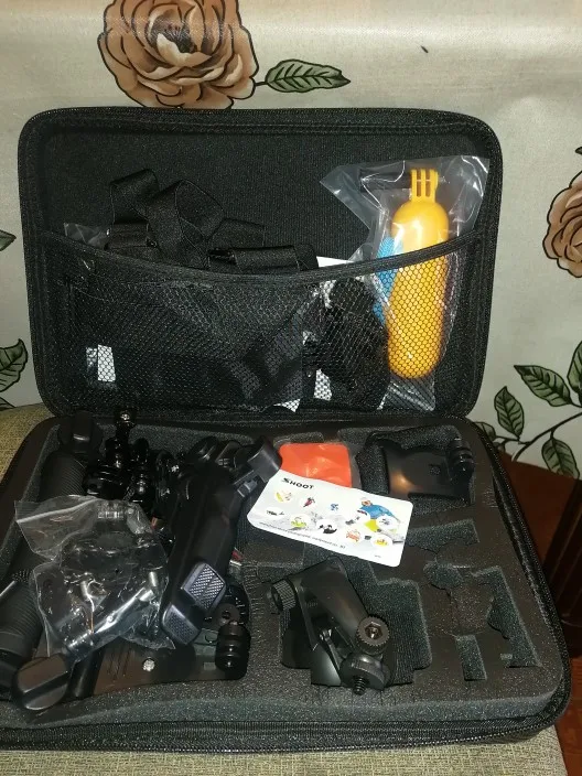Минимально-необходимый комплект под экш камеры. Жаль, что нет крепления на плечо + пластиковые зажим под велосипед, а не алюминий. В целом "цена-качество" + доставка со склада в России, курьерской службой.