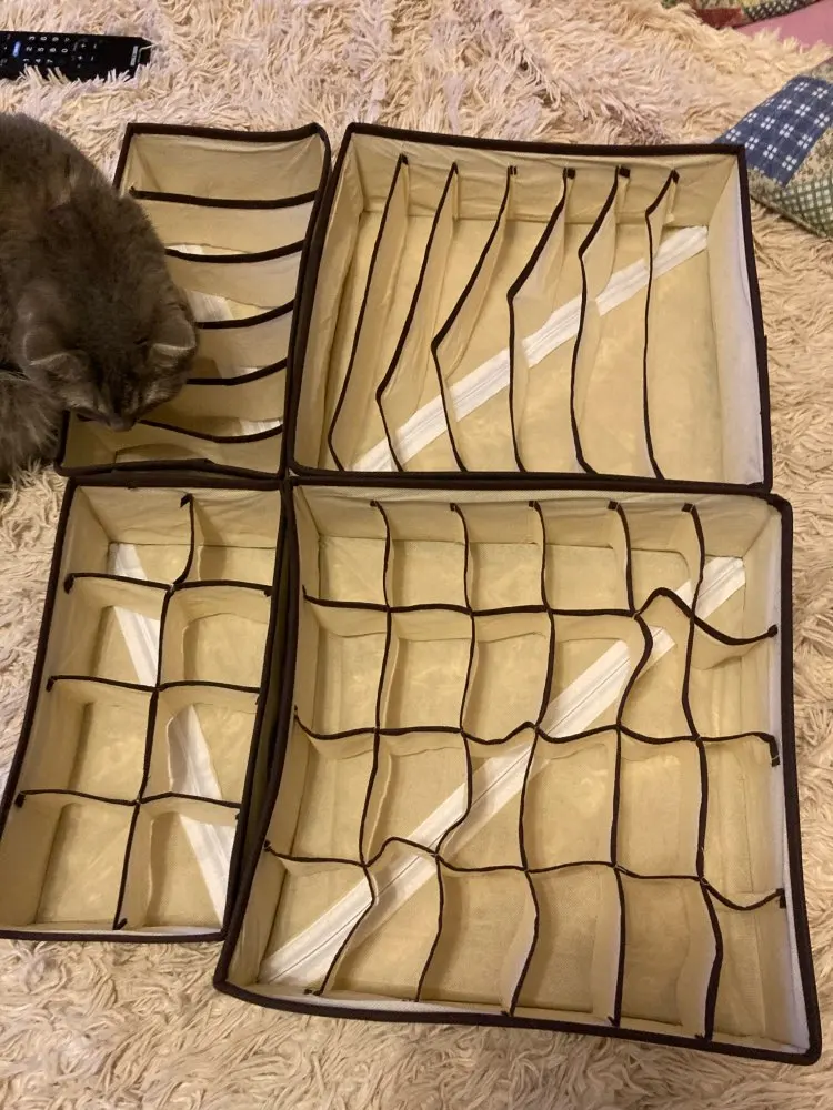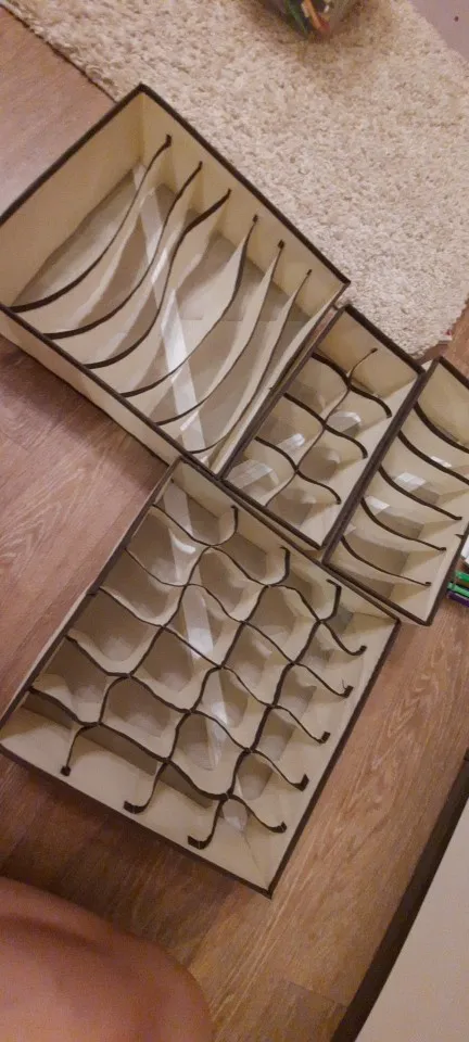 Очень доволен этим товаром, за очень хорошую цену вам прислали 4 органайзера для всех ваших нижнего белья и аксессуаров, очень практичные и удобные. Быстрая доставка и очень хороший продавец. Я рекомендую 100%.