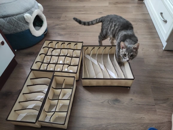 Отличные коробочки, легко собираются, подошли для моего комода. Вещи все разложила, очень удобно теперь что-то находить и порядок на полке. С продавцом не общалась, заказ пришёл за 8 дней.