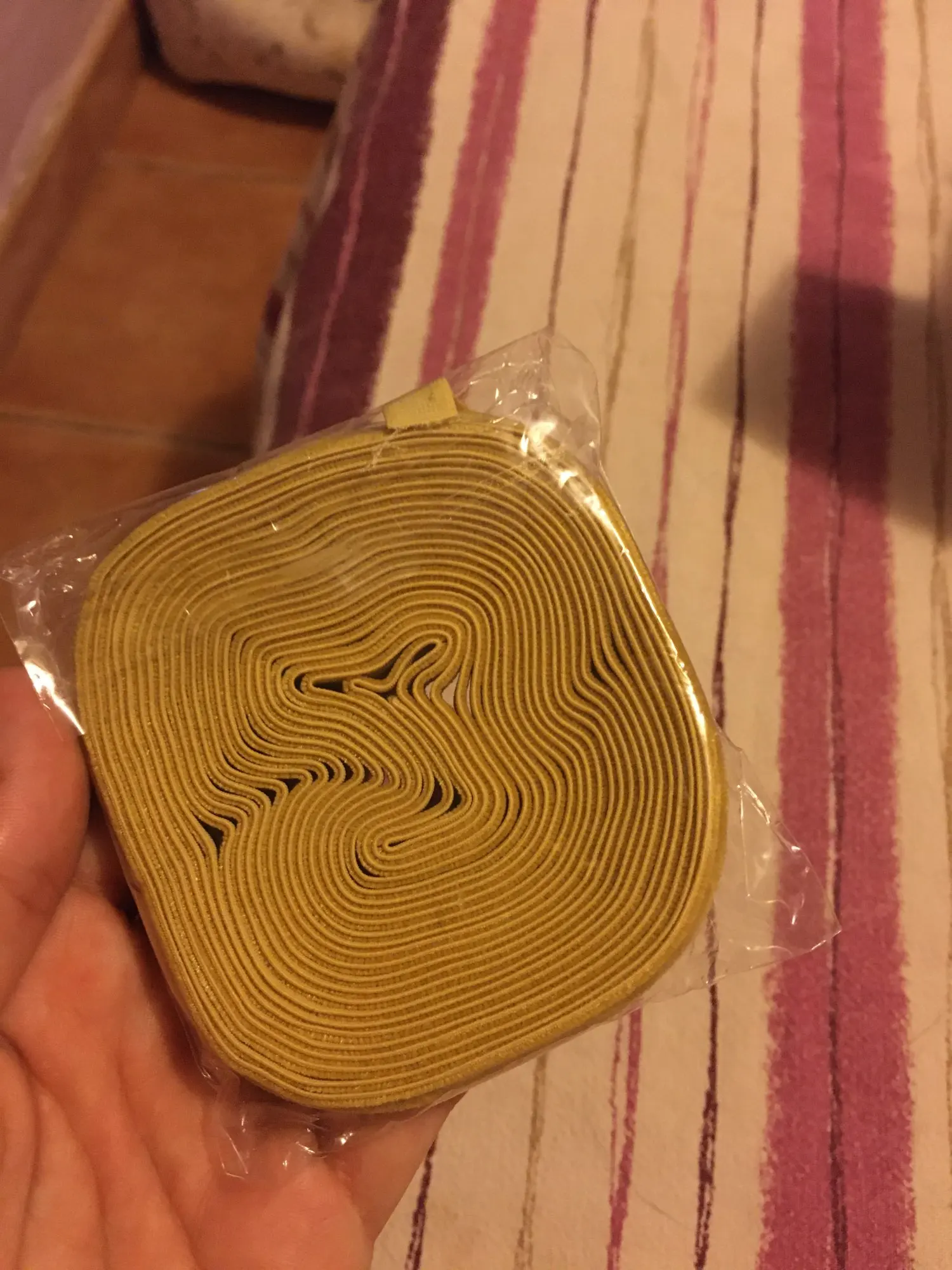 Muchas Gracias! La cinta es preciosa, muy bien hecha, suave y elástica. Tal cual la foto. Vendedor muy recomendable y además son un poco más de 9 metros.