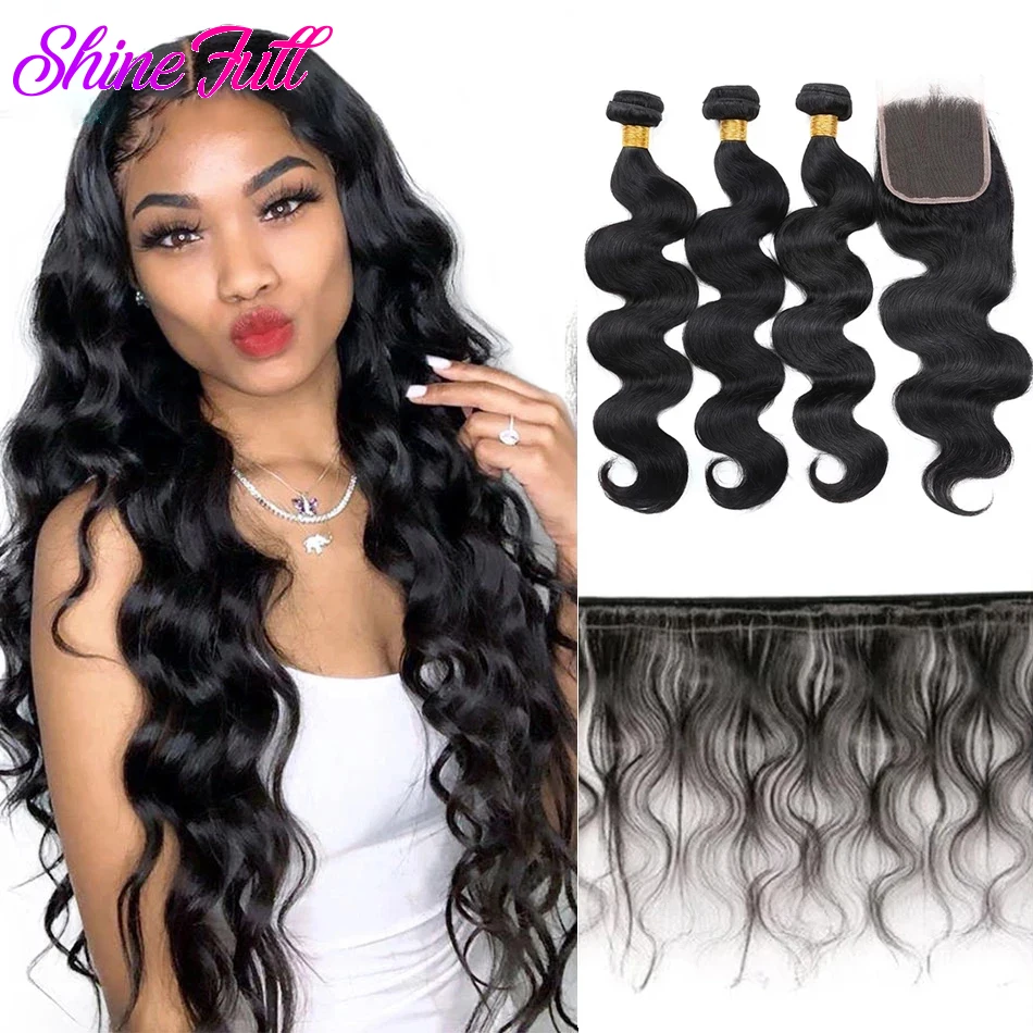 ShinrFull бразильские волосы, волнистые человеческие волосы, 3 пряди кружевной застежкой, 4X 4 волосы Remy, бесплатная доставка для черных женщин, натуральные
