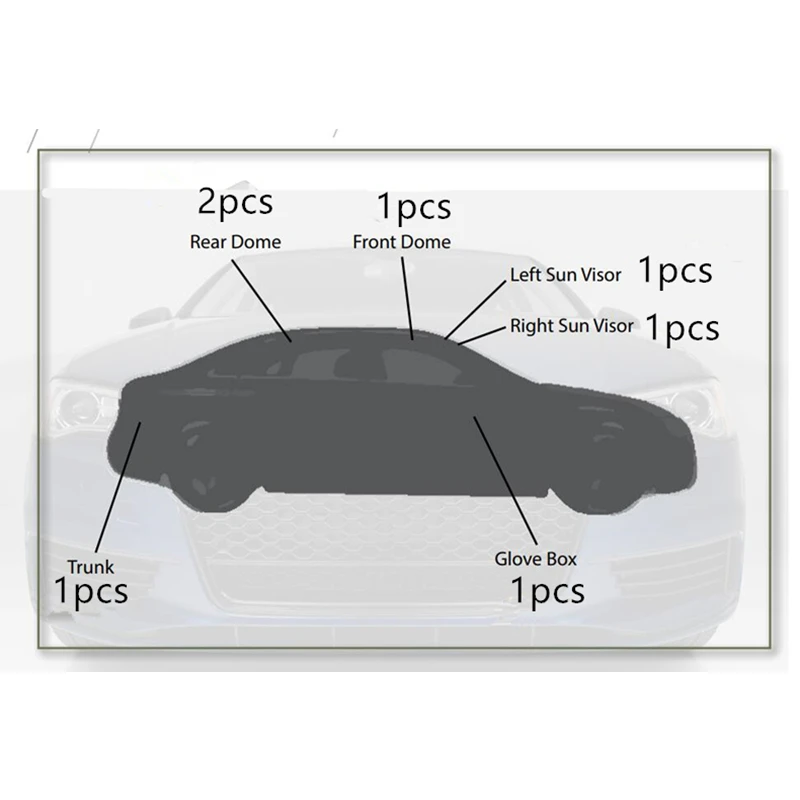 Передний купол-1 x Задний купол-2 x Светильник перчаточного ящика-1 x Зеркала-2 x Багажник-1 x