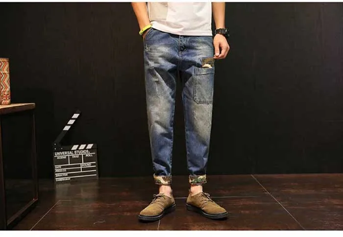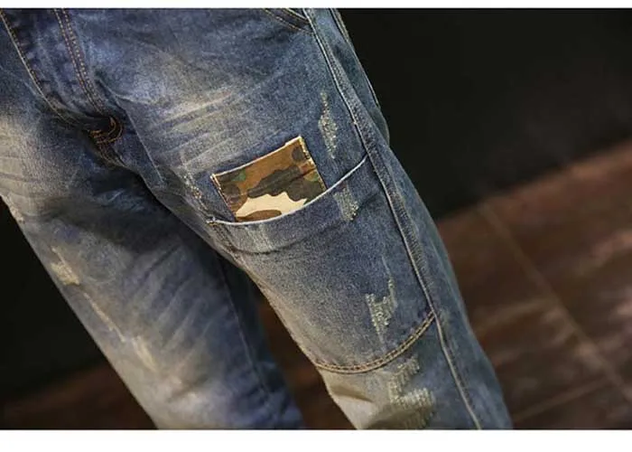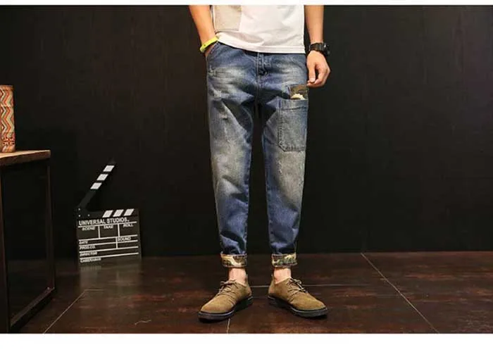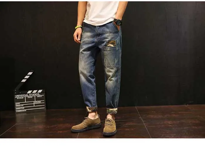 Мужские свободные джинсы-шаровары, повседневные джоггеры, джинсовые брюки в стиле хип-хоп, камуфляжные брюки в стиле пэчворк, уличная одежда, мужская одежда