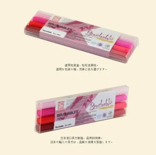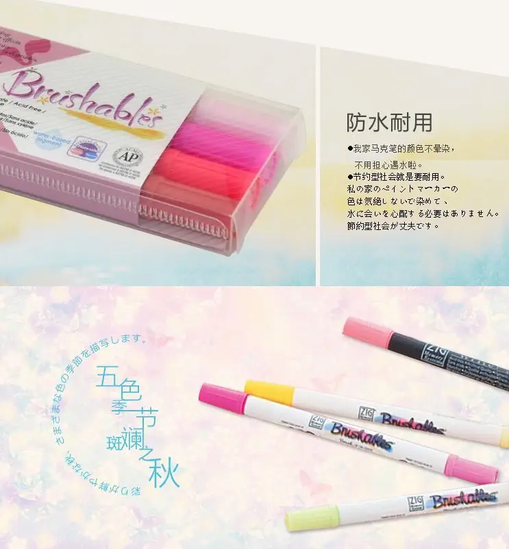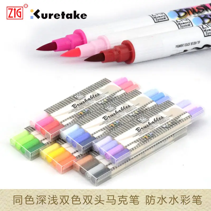 Набор водостойких кистей ZIG Kuretake, набор ручек-маркеров 4 x, Двойные наконечники, Красныйбровисинийзеленыйфиолетовыйжелтый, набор, для детей 1-4 лет
