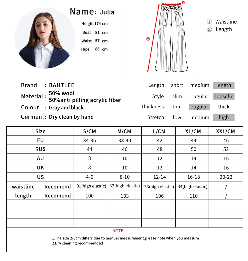 Женские трикотажные брюки BAHTLEE, повседневные свободные, с высокой эластичной талией, с поясом, модный бренд, шерсть, не скатывается, акрил, серый, черный