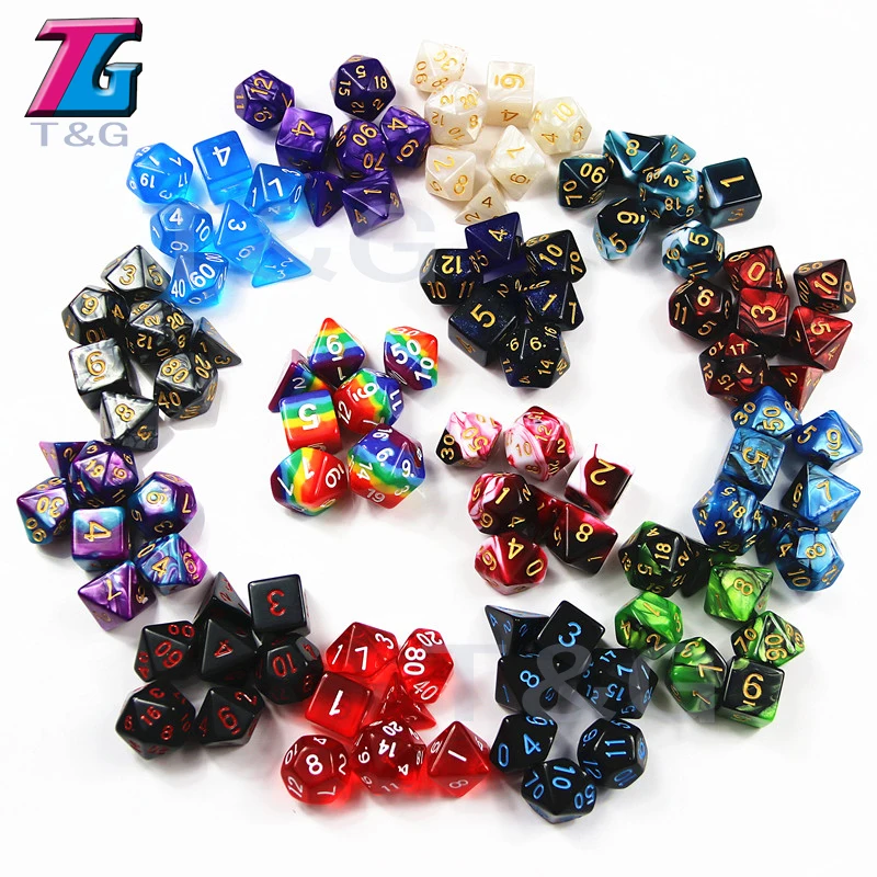105 многогранные игральные кости радуга 15 комплектов с бархатным мешком D4 D6 D8 D10 D10 % D12 D20 для ролевых игр DND настольная игра лучший подарок